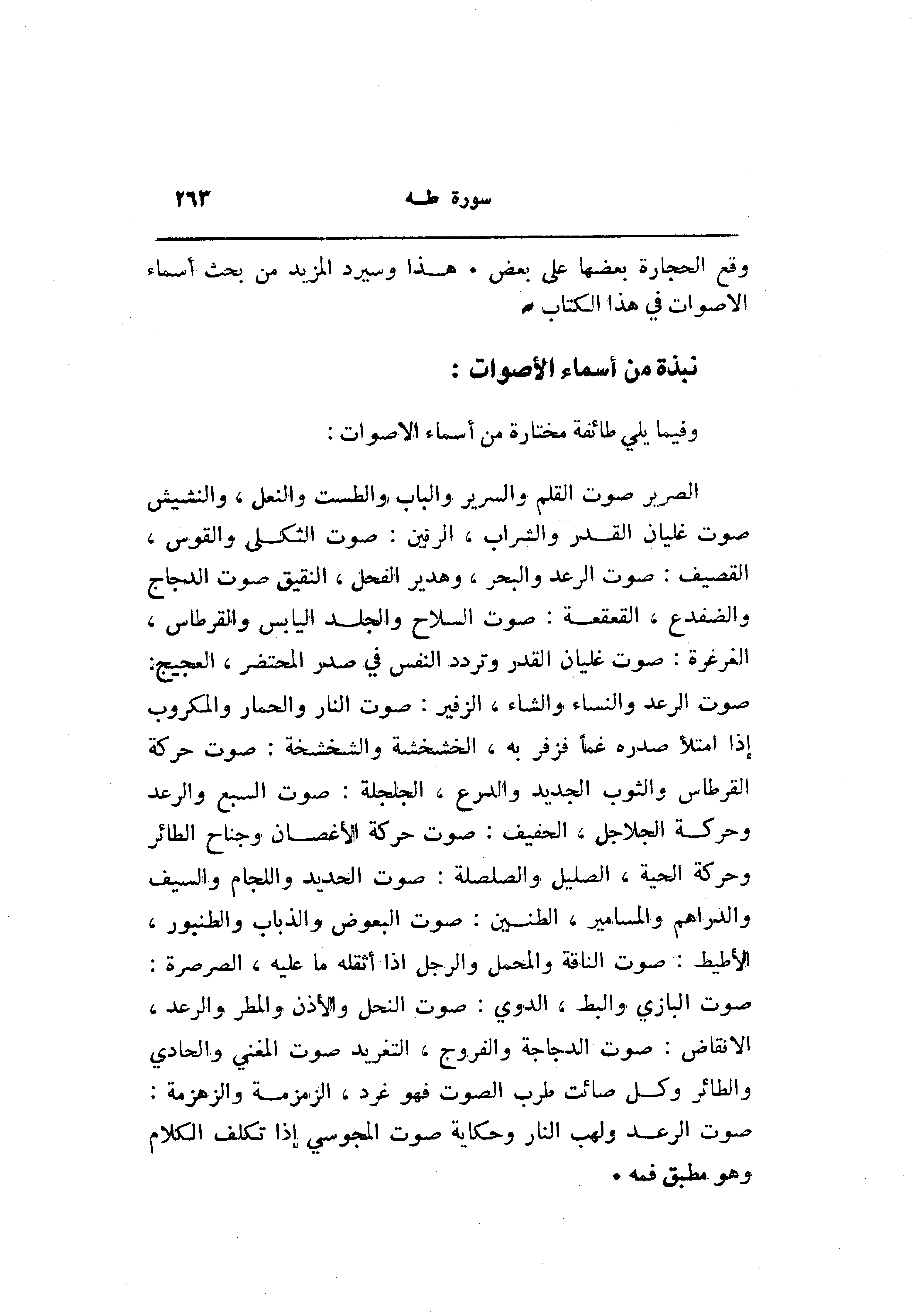 وقع الحجارة بعضها على بعض. هذا وسيرد المزيد من بحث أسماء الأصوات في هذا الكتاب.