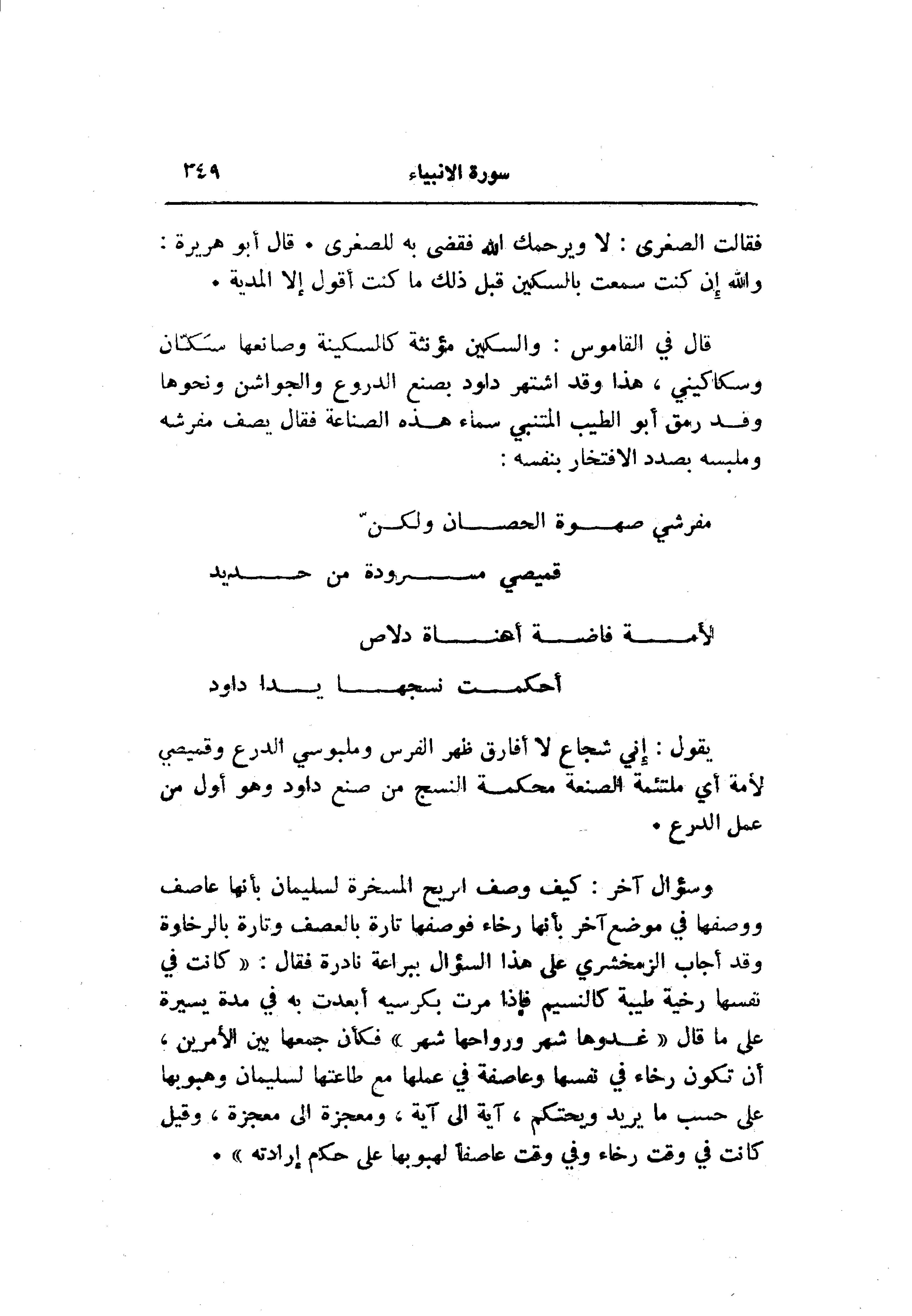 قال في القاموس: والسكين مؤنثة كالسكينة وصانعها سكّان وسكاكيني، هذا وقد اشتهر داود بصنع الدروع والجواشن ونحوها وفد رمق أبو الطيب المتنبي سماء هذه الصناعة فقال يصف مفرشه وملبسه بصدد الافتخار بنفسه: