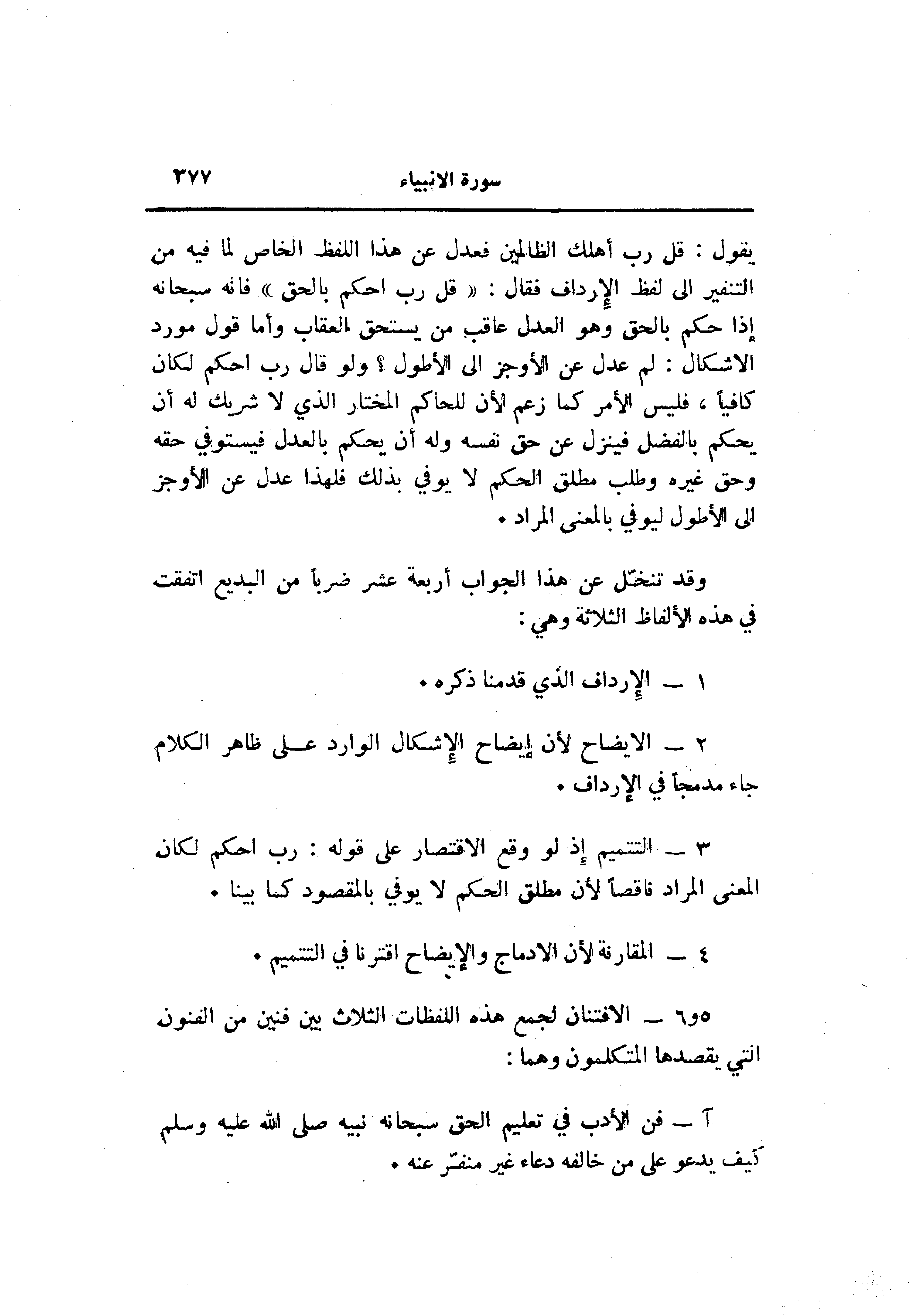 3- التتميم إذ لو وقع الاقتصار على قوله: رب احكم لكان المعنى المراد ناقصا لأن مطلق الحكم لا يوفي بالمقصود كما بينا.