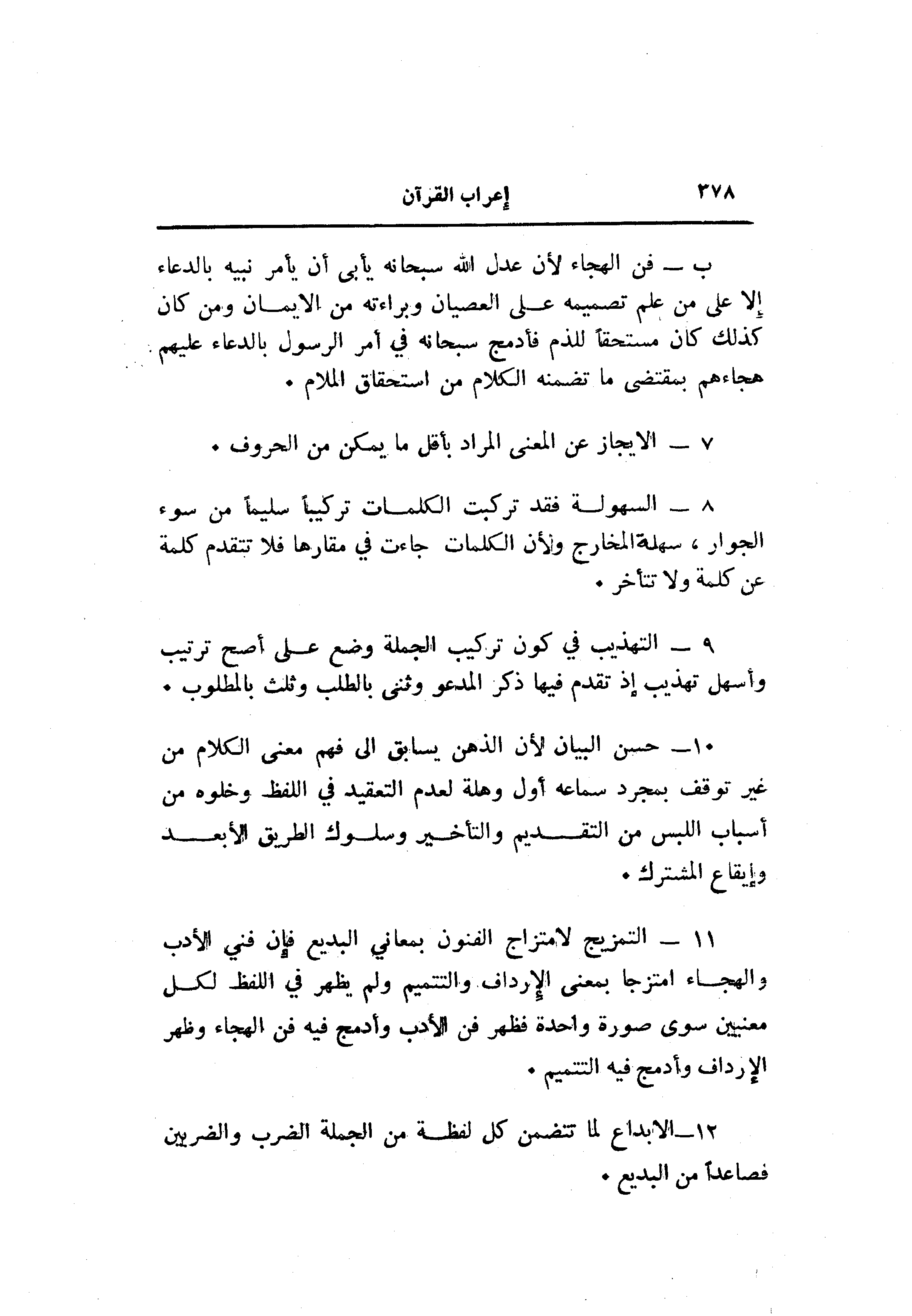 12- الإبداع لما تتضمن كل لفظة من الجملة الضرب والضربين فصاعدا من البديع.