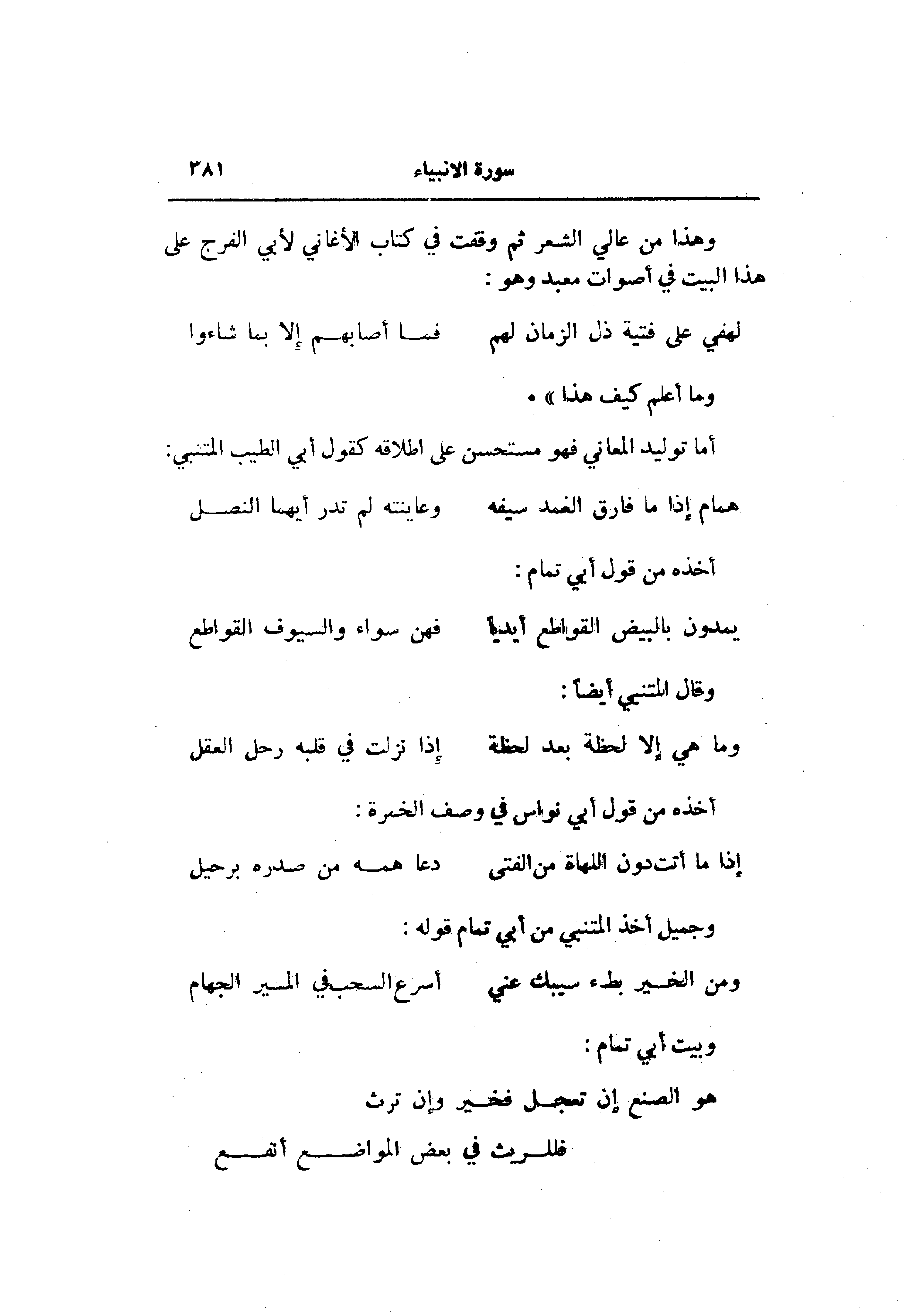 أما توليد المعاني فهو مستحسن على إطلاقه كقول أبي الطيب المتنبي: