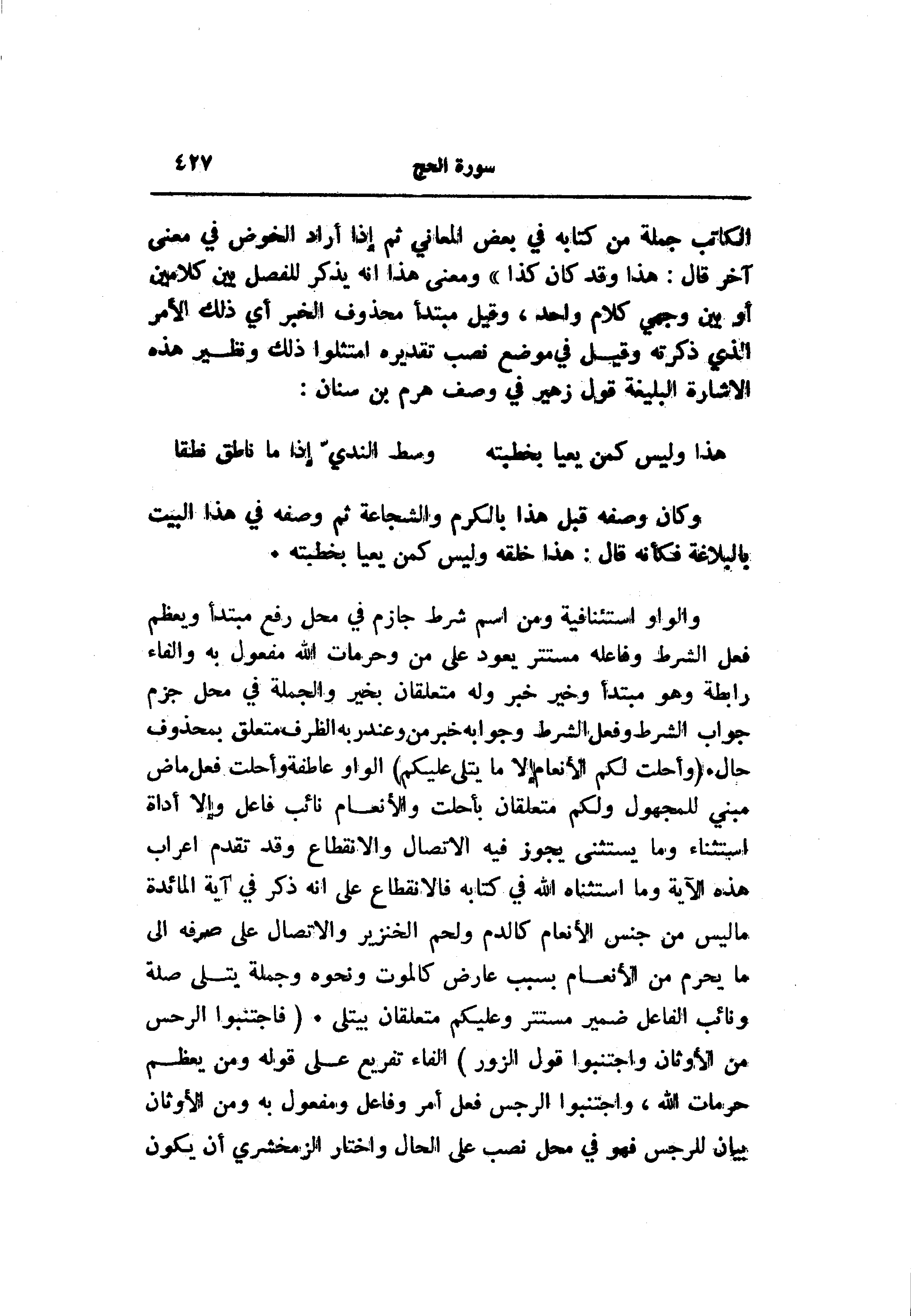 الكاتب جملة من كتابه في بعض المعاني ثم إذا أراد الخوض في معنى آخر قال: هذا وقد كان كذا» ومعنى هذا انه يذكر للفصل بين كلامين أو بين وجهي كلام واحد، وقيل مبتدأ محذوف الخبر أي ذلك الأمر الذي ذكرته وقيل في موضع نصب تقديره امتثلوا ذلك ونظير هذه الاشارة البليغة قول زهير في وصف هرم بن سنان: