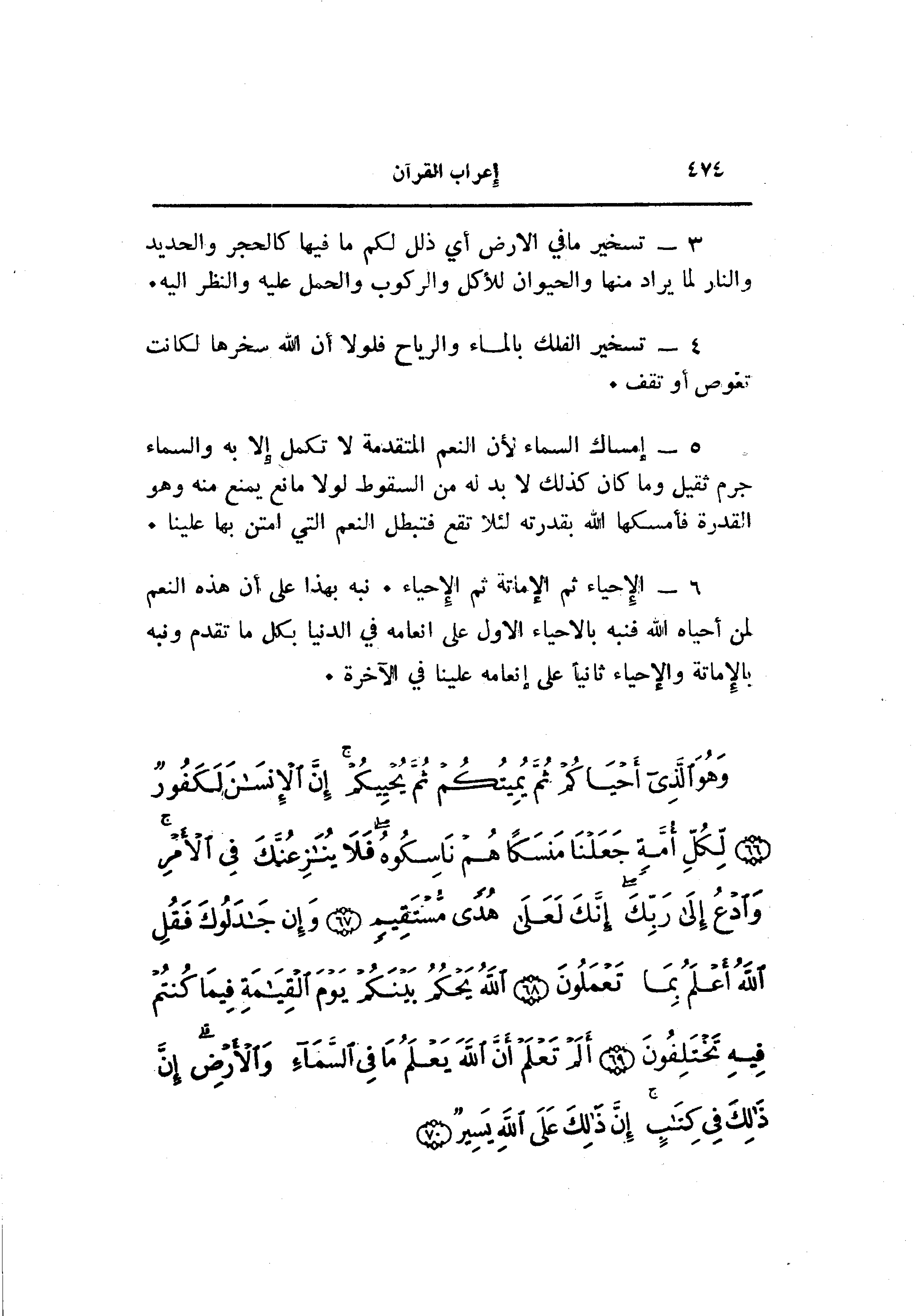 6- الإحياء ثم الإماتة ثم الإحياء. نبه بهذا على أن هذه النعم لمن أحياه الله فنبه بالاحياء الاول على انعامه في الدنيا بكل ما تقدم ونبه بالإماتة والإحياء ثانيا على إنعامه علينا في الآخرة.