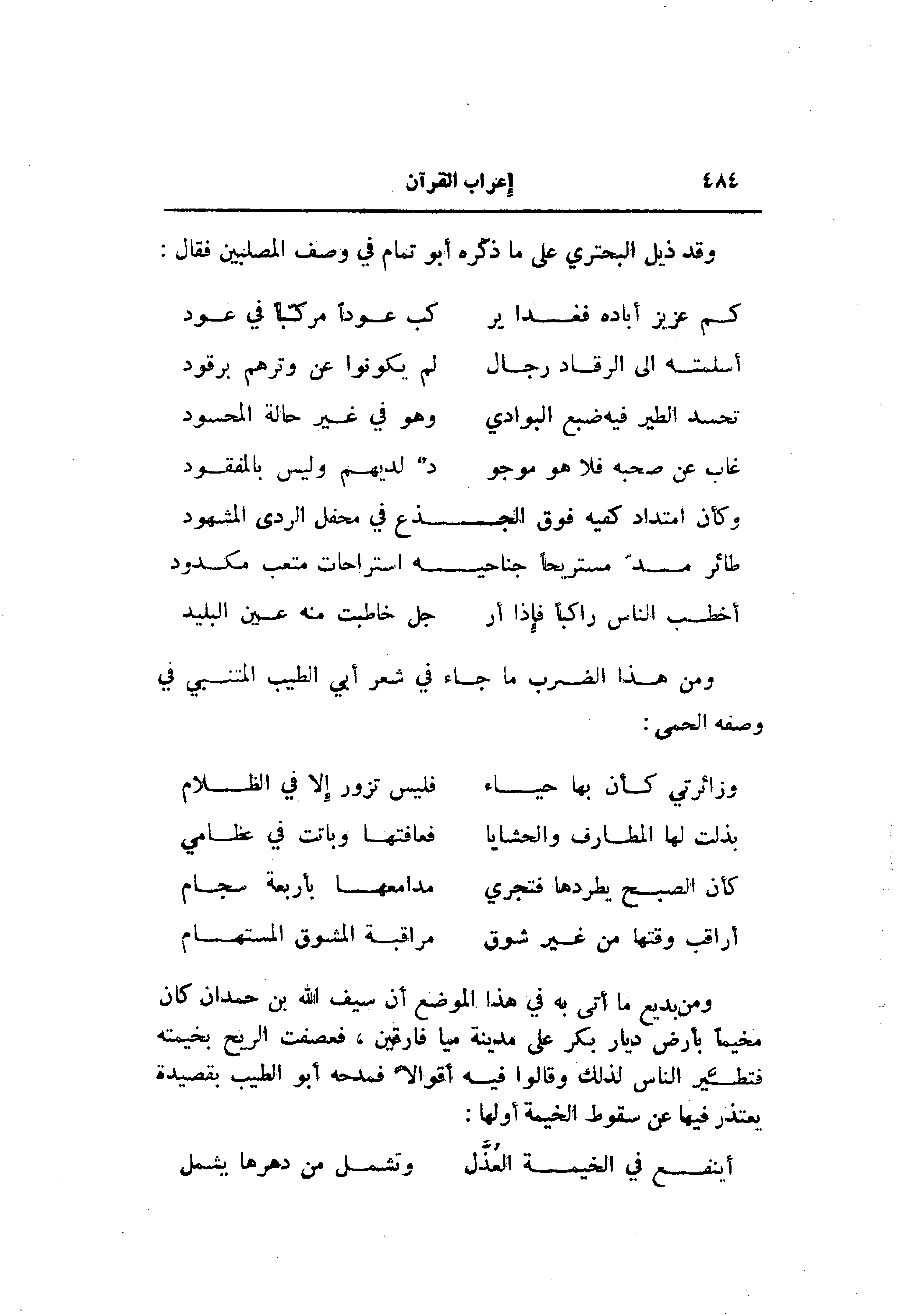 ومن بديع ما أتى به في هذا الموضع أن سيف الله بن حمدان كان مخيما بأرض ديار بكر على مدينة ميا فارقين، فعصفت الريح بخيمته فتطّير الناس لذلك وقالوا فيه أقوالا فمدحه أبو الطيب بقصيدة يعتذر فيها عن سقوط الخيمة أولها: