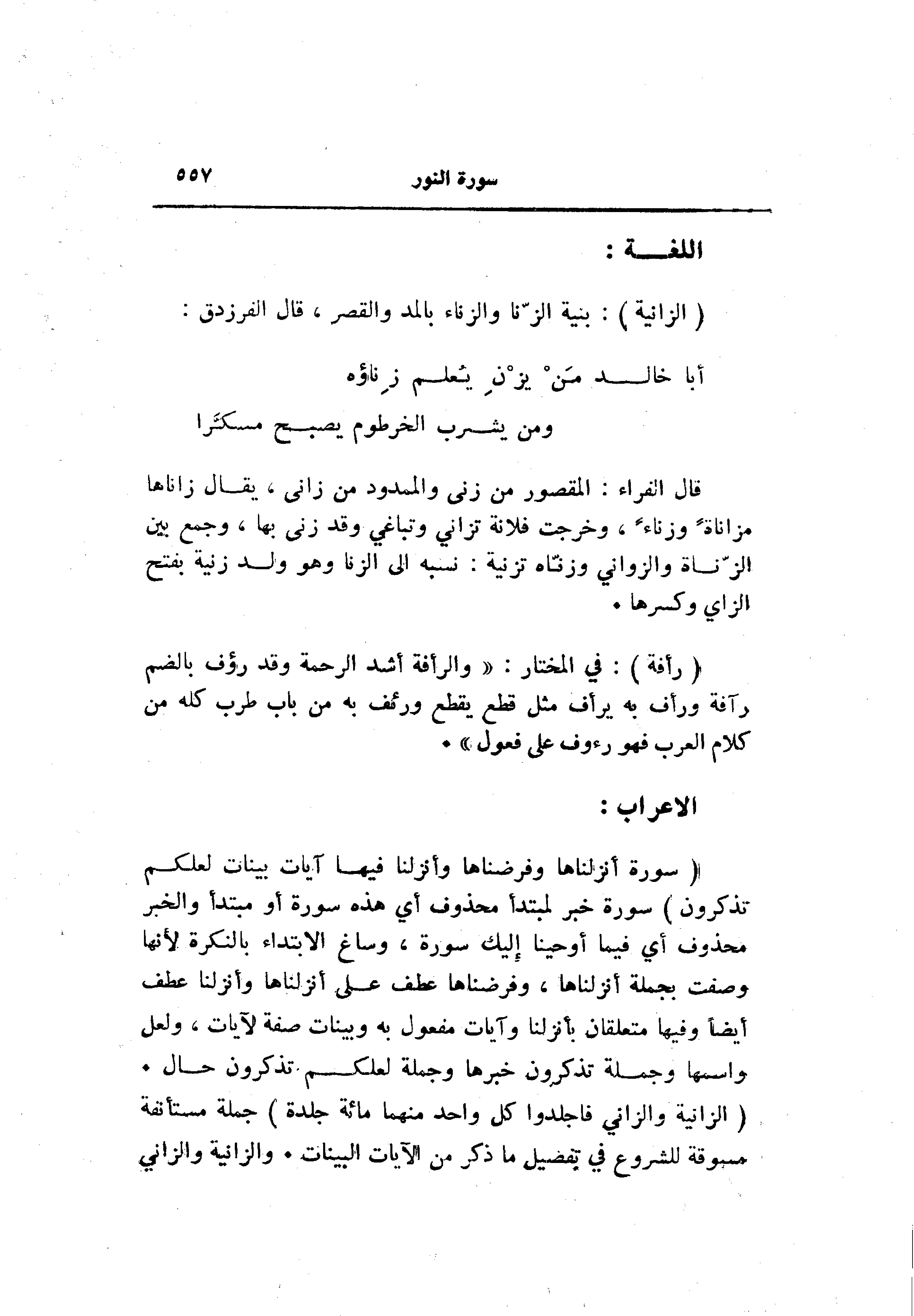 (سُورَةٌ أَنْزَلْناها وَفَرَضْناها وَأَنْزَلْنا فِيها آياتٍ بَيِّناتٍ لَعَلَّكُمْ تَذَكَّرُونَ) سورة خبر لمبتدأ محذوف أي هذه سورة أو مبتدأ والخبر محذوف أي فيما أوحينا إليك سورة، وساغ الابتداء بالنكرة لأنها وصفت بجملة أنزلناها، وفرضناها عطف على أنزلناها وأنزلنا عطف أيضا وفيها متعلقان بأنزلنا وآيات مفعول به وبينات صفة لآيات، ولعل واسمها وجملة تذكرون خبرها وجملة لعلكم تذكرون حال.