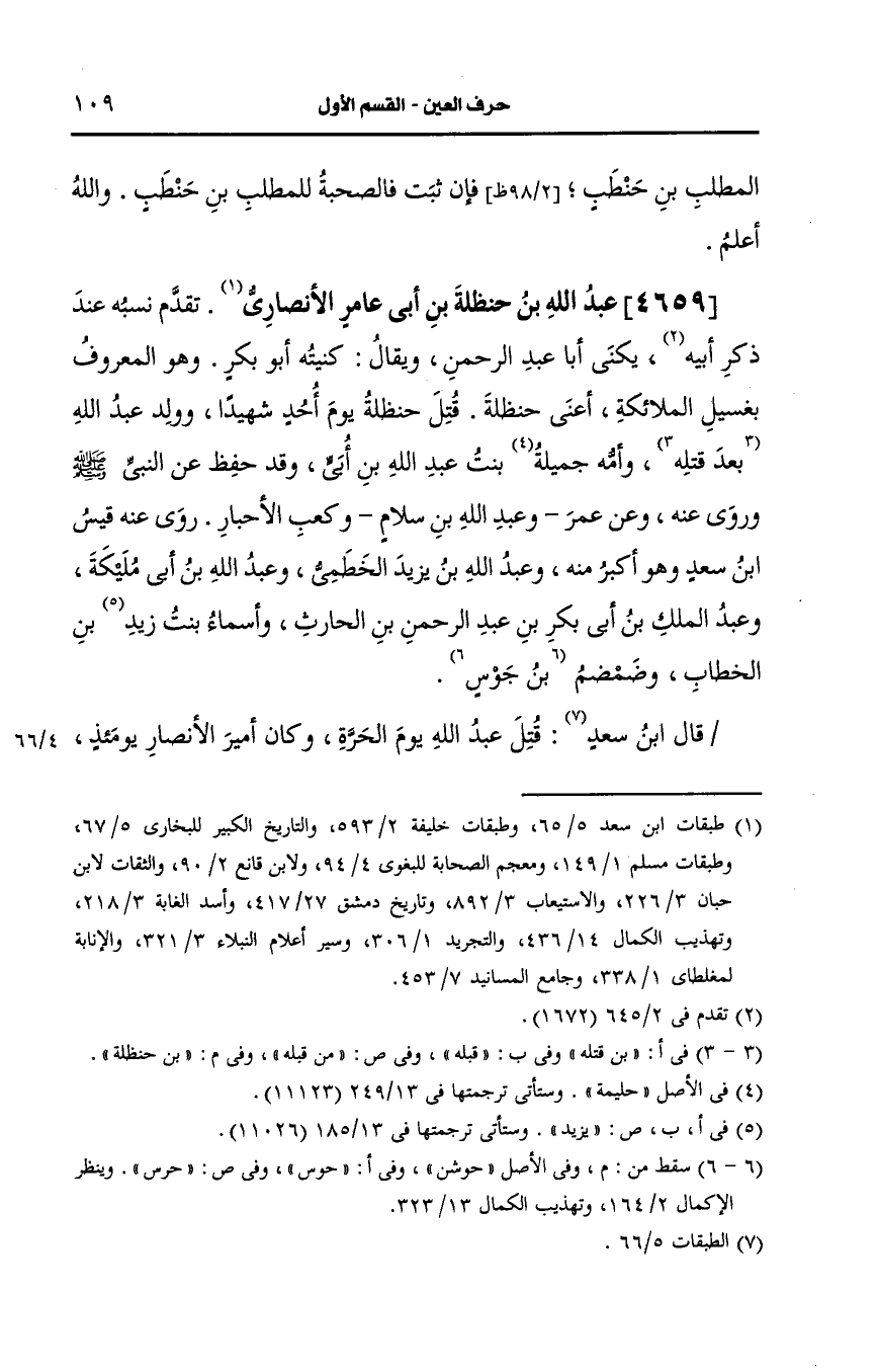 ويُقال: كنيته أَبو بكر وهو المعروف بغسيل الملائكة أعني حنظلة.