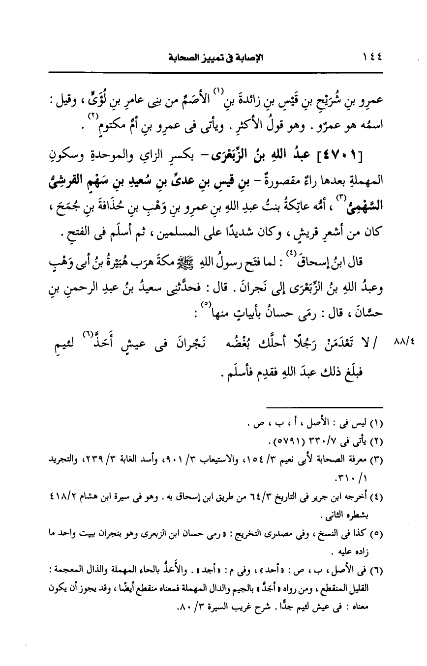 4701- عَبد الله بن الزبعري بكسر الزاي والموحدة وسكون المهملة بعدها راء مقصورة بن قيس بن عَدِيّ بن سعيد بن سهم، القُرشِيّ السهمي.