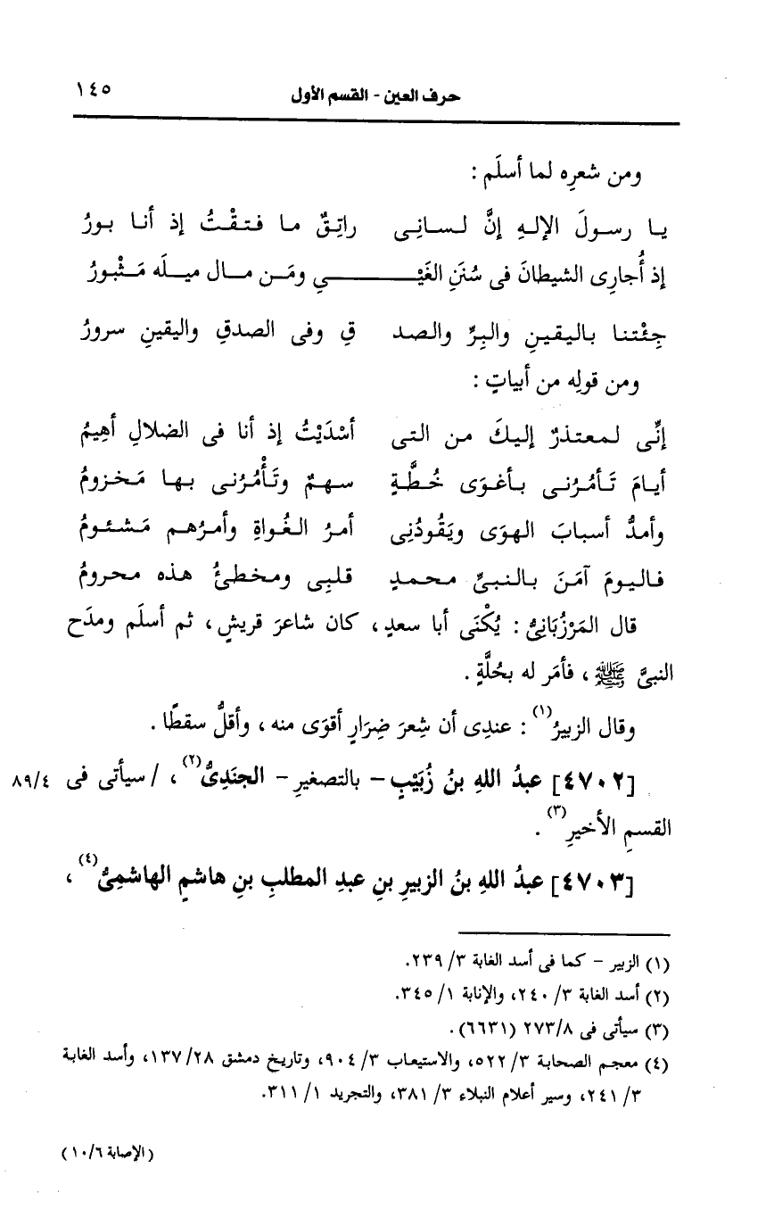 4703- عَبد الله بن الزبير بن عبد المطلب بن هاشم الهاشمي، ابن عم النَّبيّ صَلى الله عَلَيه وسَلم.