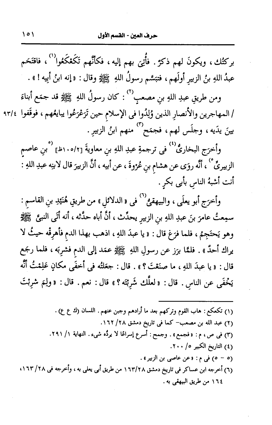 ومن طريق عَبد الله بن مصعب كان رسول الله صَلى الله عَلَيه وسَلم قد جمع أبناء المهاجرين والأنصار الذين ولدوا في الإسلام حتى ترعرعوا فوقفوا بين يديه فبايعهم وجلس لهم فجمع منهم بن الزبير.