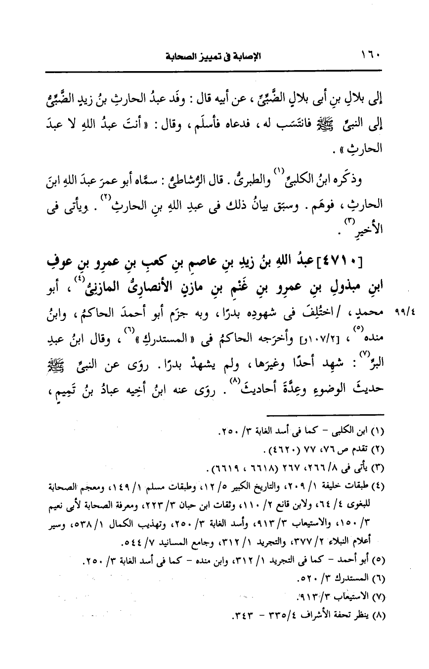 4710- عَبد الله بن زيد بن عاصم بن كعب بن عَمرو بن عوف بن مبذول بن عَمرو بن غنم بن مازن، الأَنصارِيّ المازني أَبو محمد.