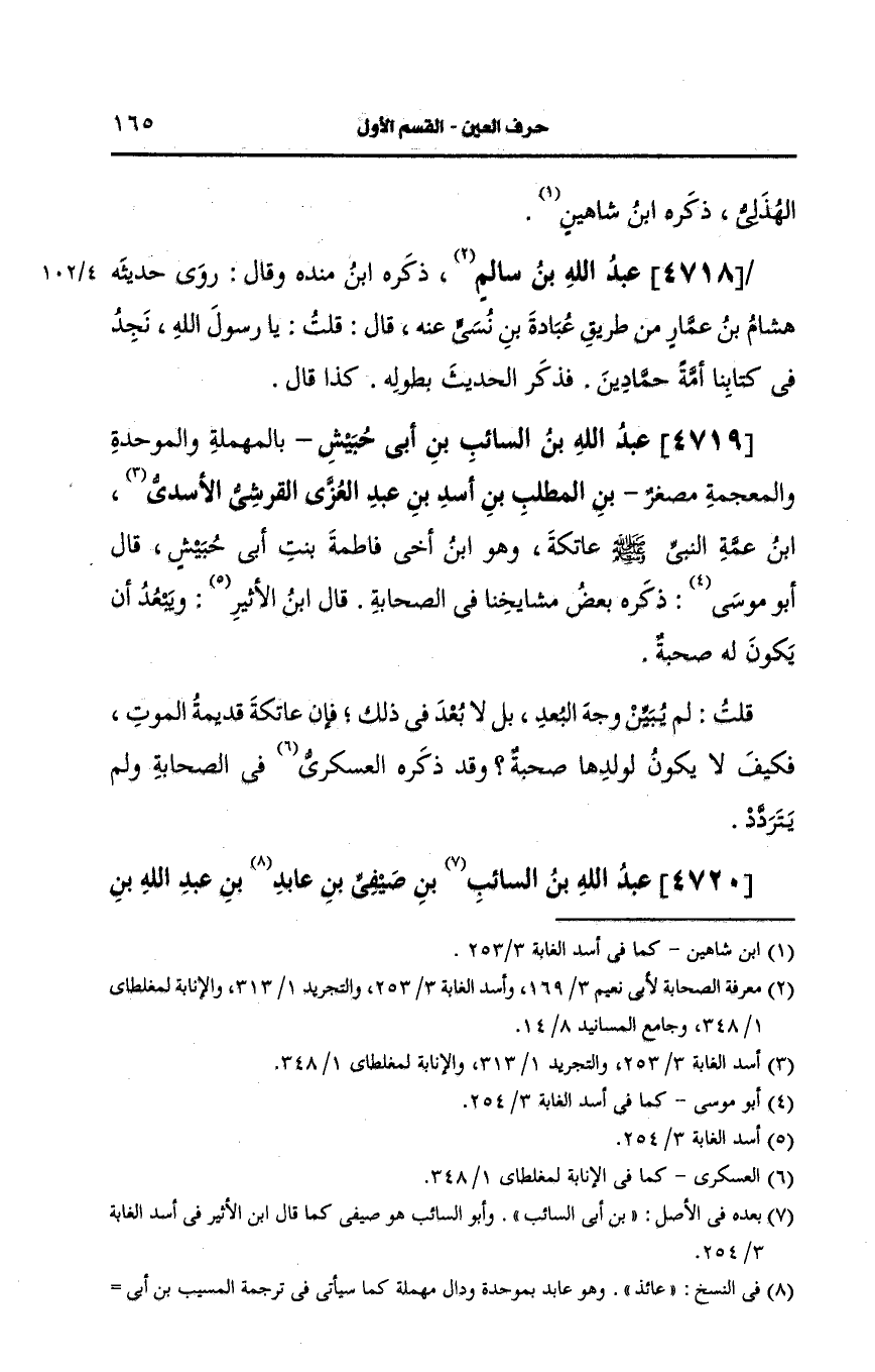 4719- عَبد الله بن السائب بن أبي حبيش بالمهملة والموحدة والمعجمة مصغرا بن المطلب بن أسد بن عبد العزى، القُرشِيّ الأسدي.