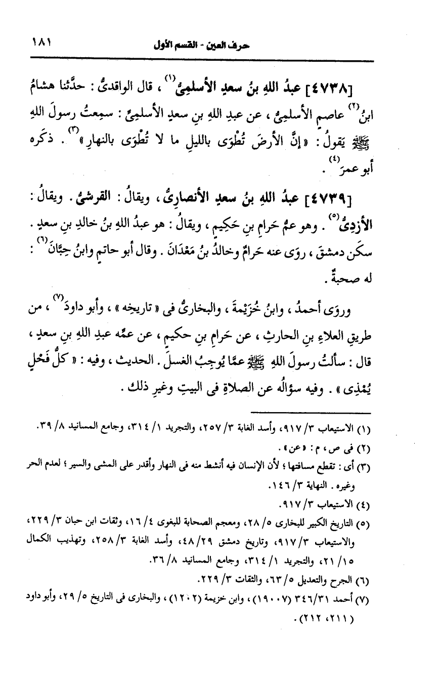 قال الوَاقِدِيُّ: حَدَّثنا هشام، عَن عاصم الأسلمي، عَن عَبد الله ابن سَعد الأسلمي سمعت رسول الله صَلى الله عَلَيه وسَلم يقول إن الأرض تطوى بالليل ما لا تطوى بالنهار ذكره أَبو عمر.