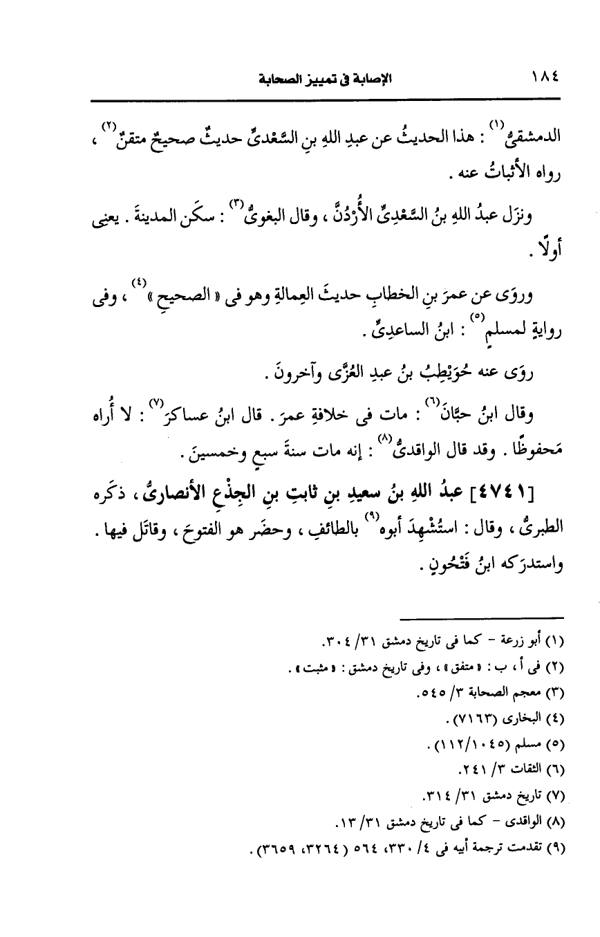 4741- (ز) عَبد الله بن سعيد بن ثابت بن جذع، الأَنصارِيّ.