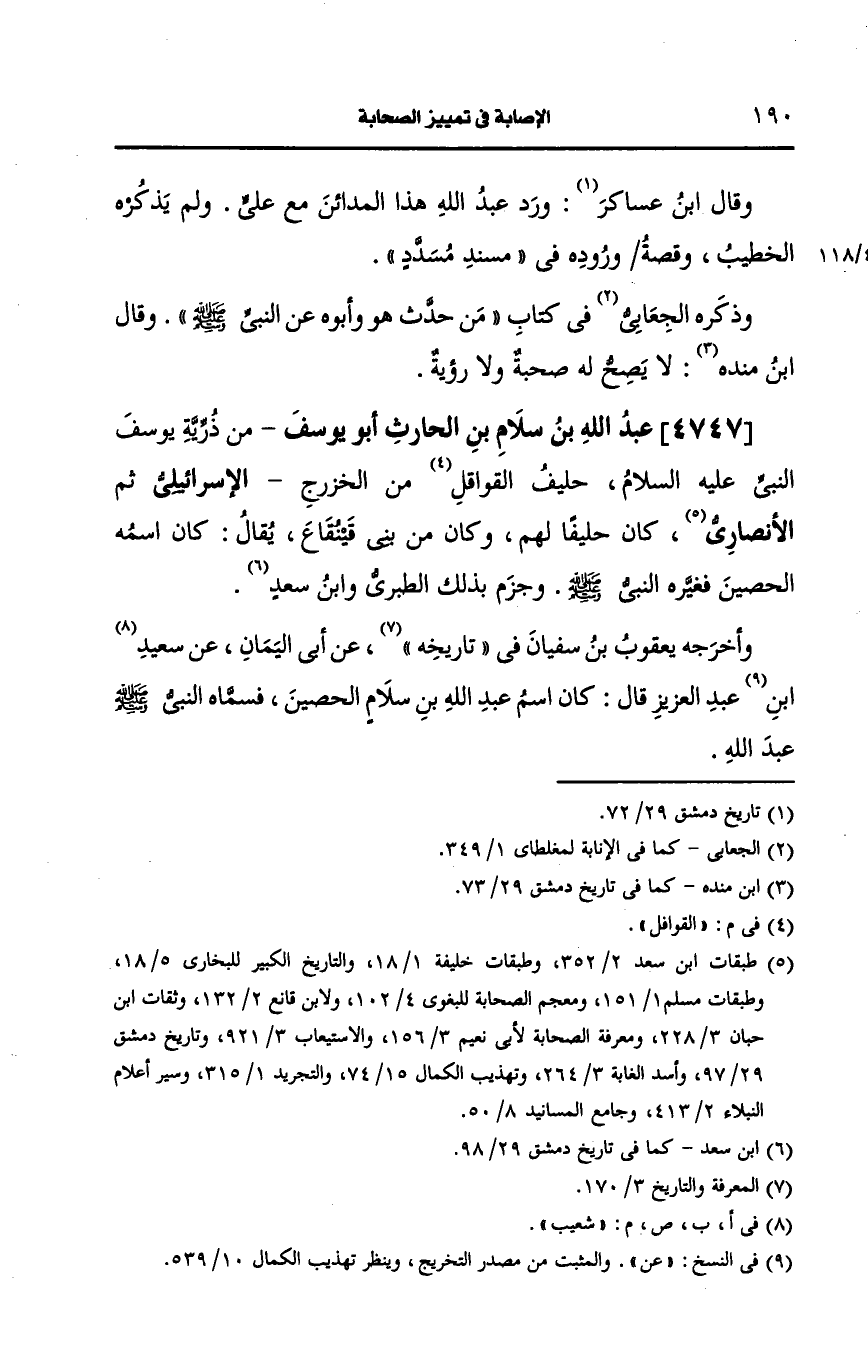 وأَخرجه يعقوب بن سفيان، في "تاريخه"، عَن أبي اليمان، عَن شعيب، عَن عبد العزيز، قال: كان اسم عَبد الله بن سلام الحصين فسماه النَّبيّ صَلى الله عَلَيه وسَلم عَبد الله.