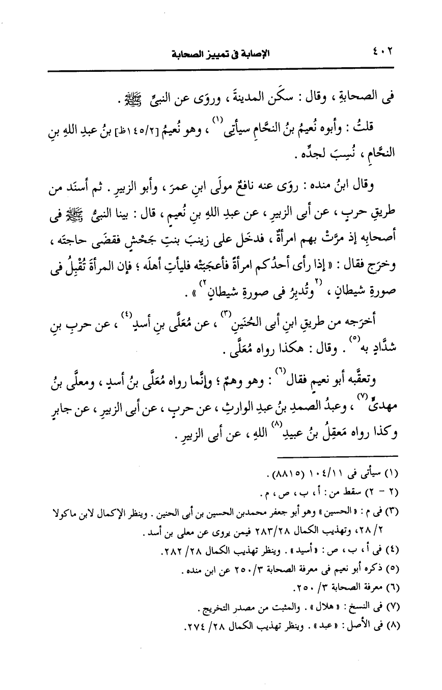 قلت: وأَبو نعيم بن النحام سيأتي وهو نعيم بن عَبد الله بن النحام نسب لجده.