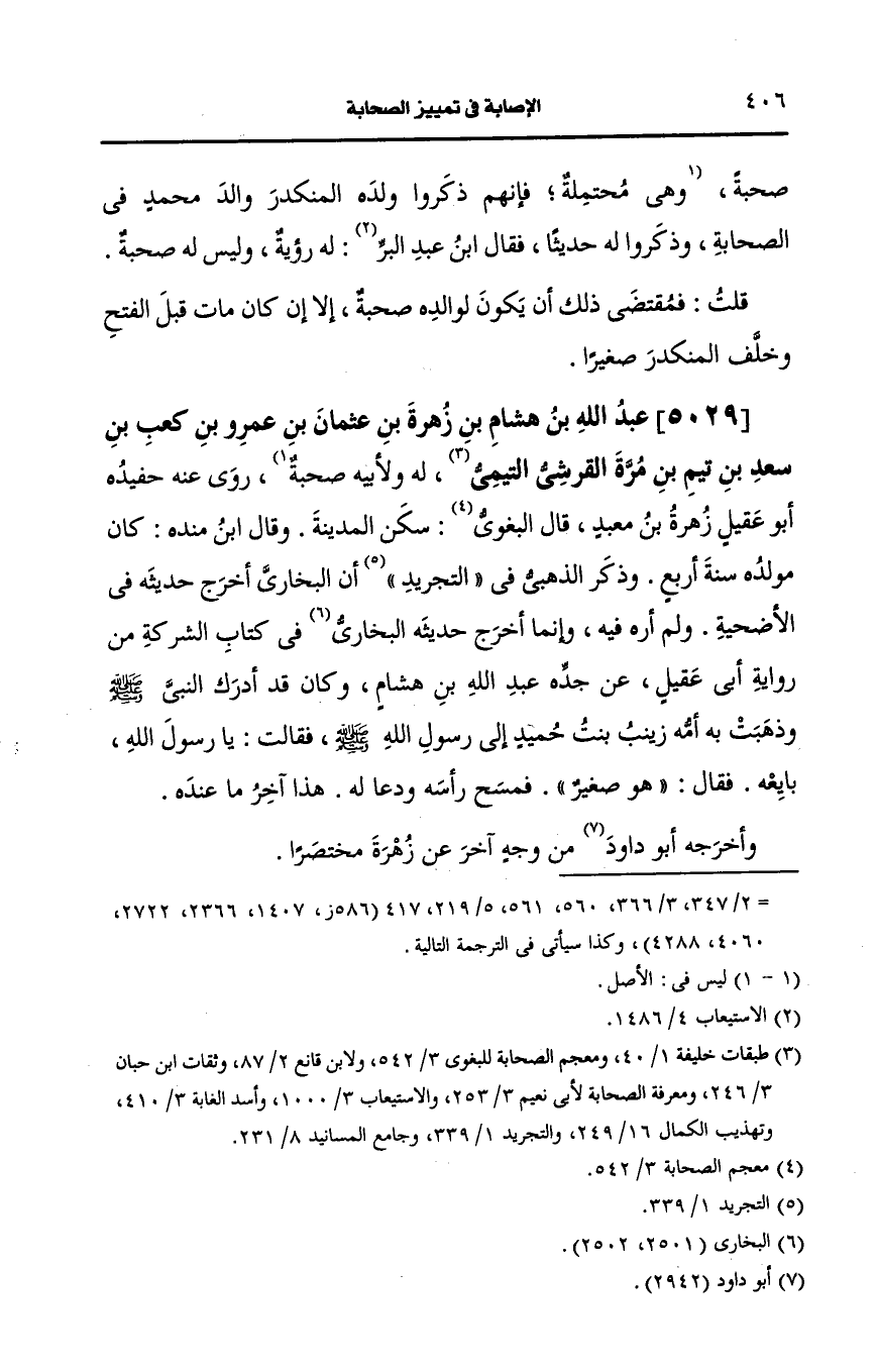 5029- عَبد الله بن هشام بن زهرة بن عثمان بن عَمرو بن كعب ابن سَعد بن تيم بن مرة، القُرشِيّ التيمي.