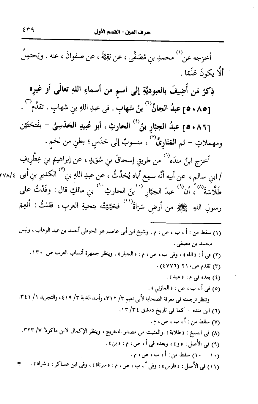 5086- عبد الجبار بن عبد الحارث: أَبو عبيد الحدسي بفتحتين وبمهملات ثم المناري منسوب إلى حدس بطن من لخم.