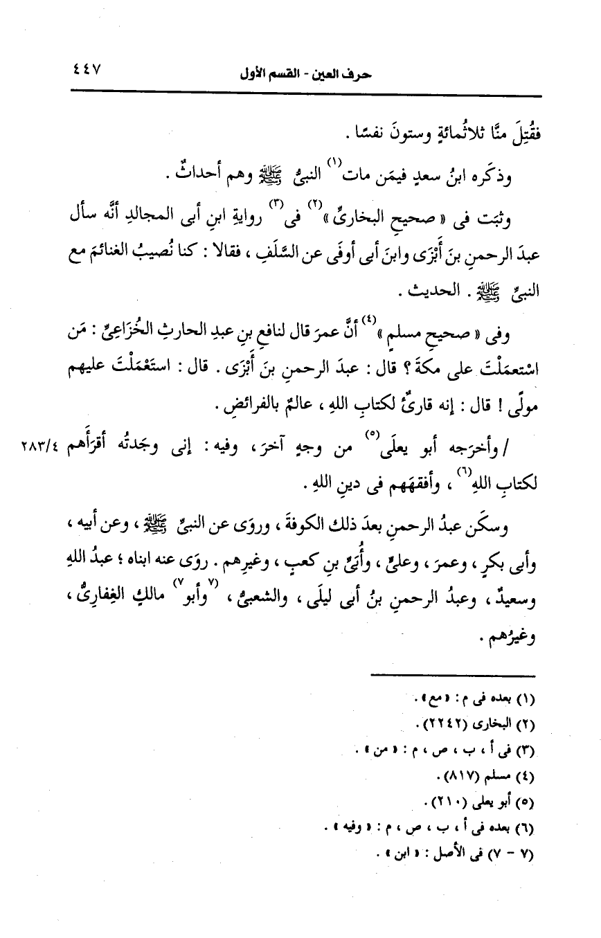 وفي صحيح مسلم أن عمر قال لنافع بن عبد الحارث الخُزاعيّ من استعملت على مكة قال عبد الرحمن بن أبزي قال استعملت عليهم مولى قال إنه قارىء لكتاب الله عالم بالفرائض.
