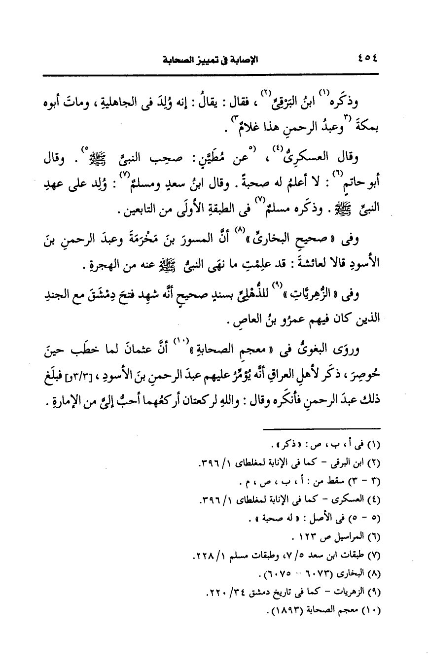 وهذا لم يذكره البغوي لعبد الرحمن وإنما ذكره لراوي الحديث، عَن عبد الرحمن وهو الطفيل بن الحارث.