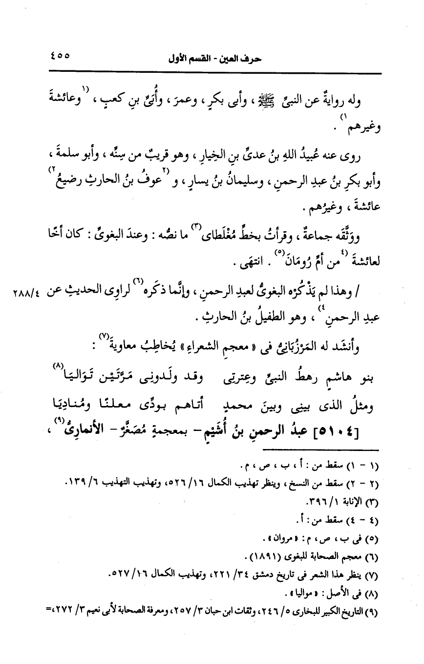 5104- عبد الرحمن بن أشيم بمعجمة مصغرا الأنماري.