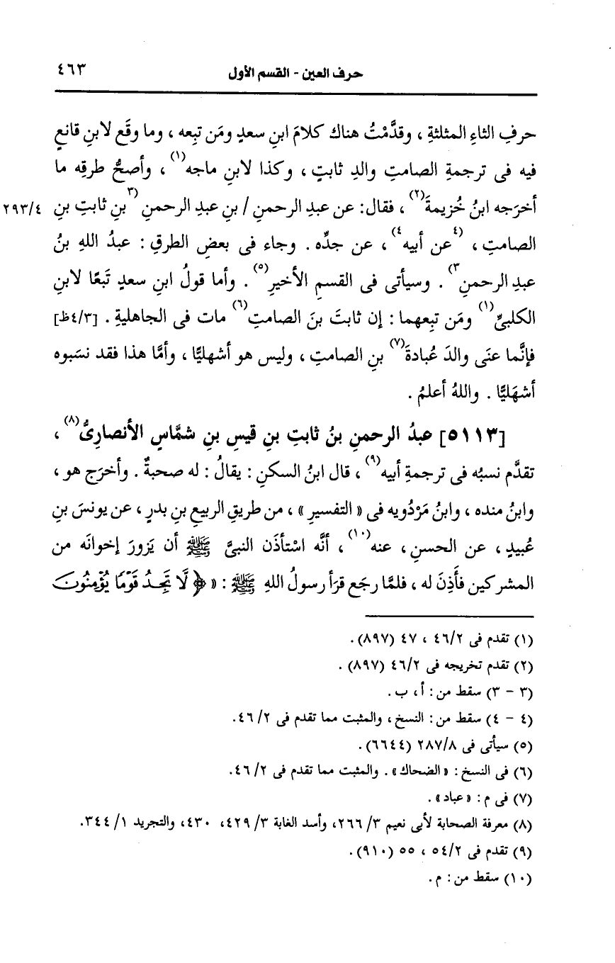 5113- عبد الرحمن بن ثابت بن قيس بن شماس، الأَنصارِيّ.