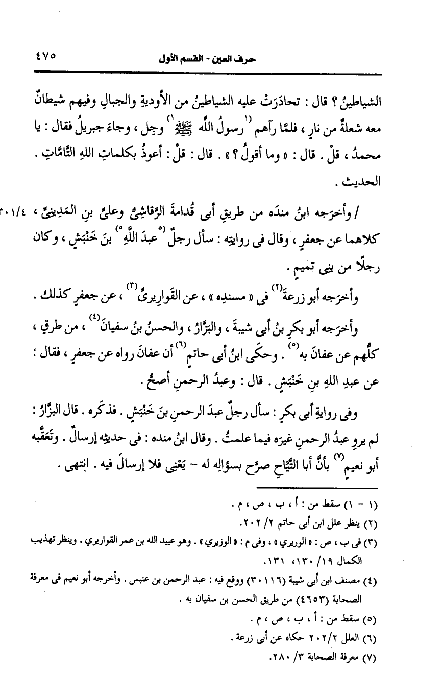 وأَخرجه ابن مَنْدَه من طريق أبي قدامة الرقاشي وعلى المديني كلاهما، عَن جعفر وقال في روايته سأل رجل عَبد الله بن خنبش، وكان رجلا من بني تميم.