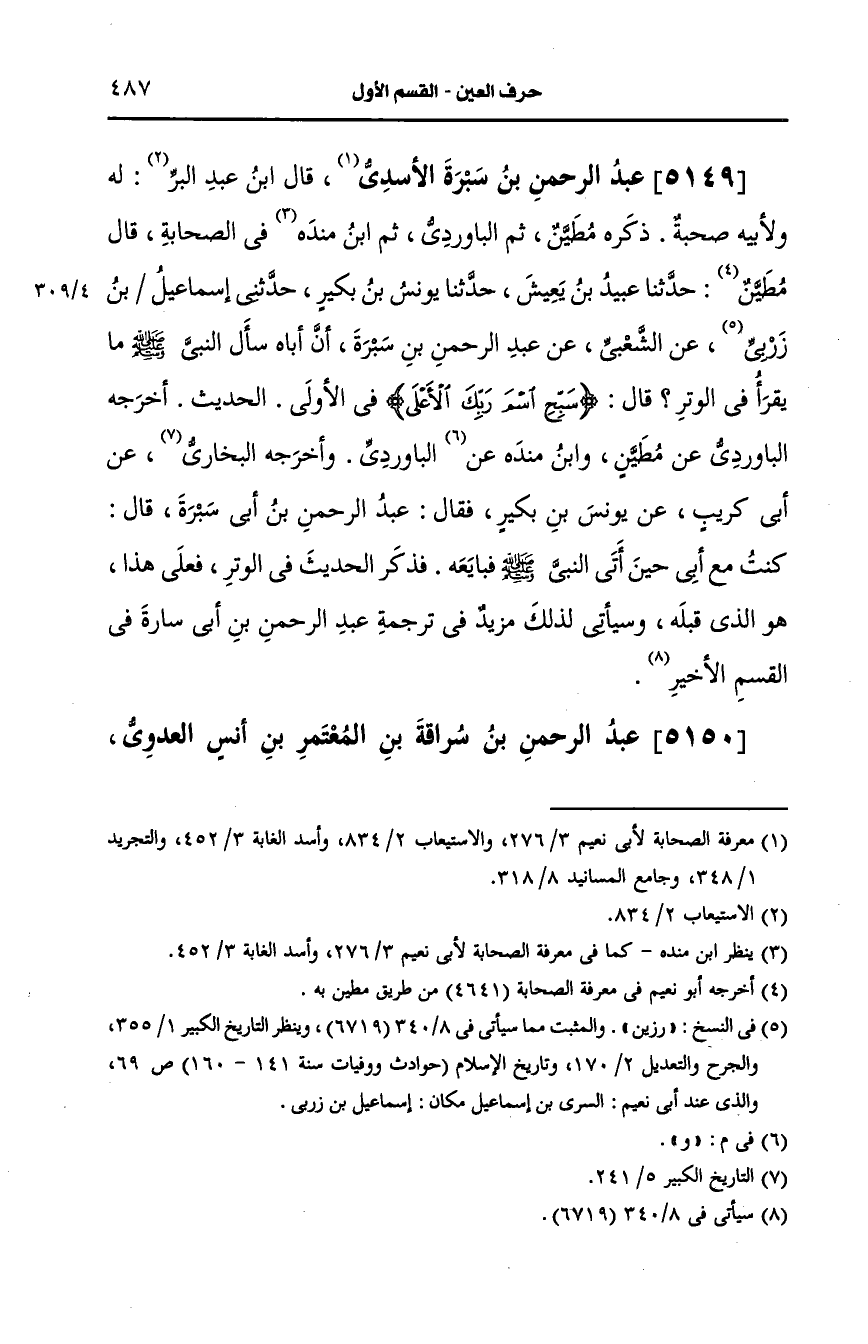 5150- عبد الرحمن بن سراقة بن المعتمر بن أنس العدوي وسيأتي نسبه في ترجمة أخيه عَبد الله.