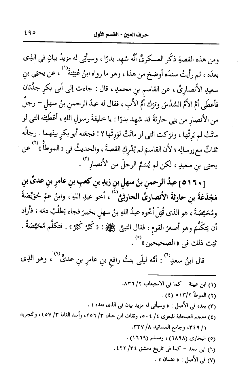 5160- عبد الرحمن بن سهل بن زيد بن كعب بن عامر بن عَدِيّ بن مجدعة بن حارثة، الأَنصارِيّ الحارثي.