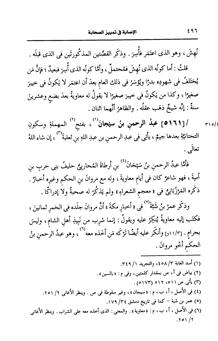 5161- (ز) عبد الرحمن بن سيجان: بالسين المهملة وسكون التحتانية بعدها جيم.