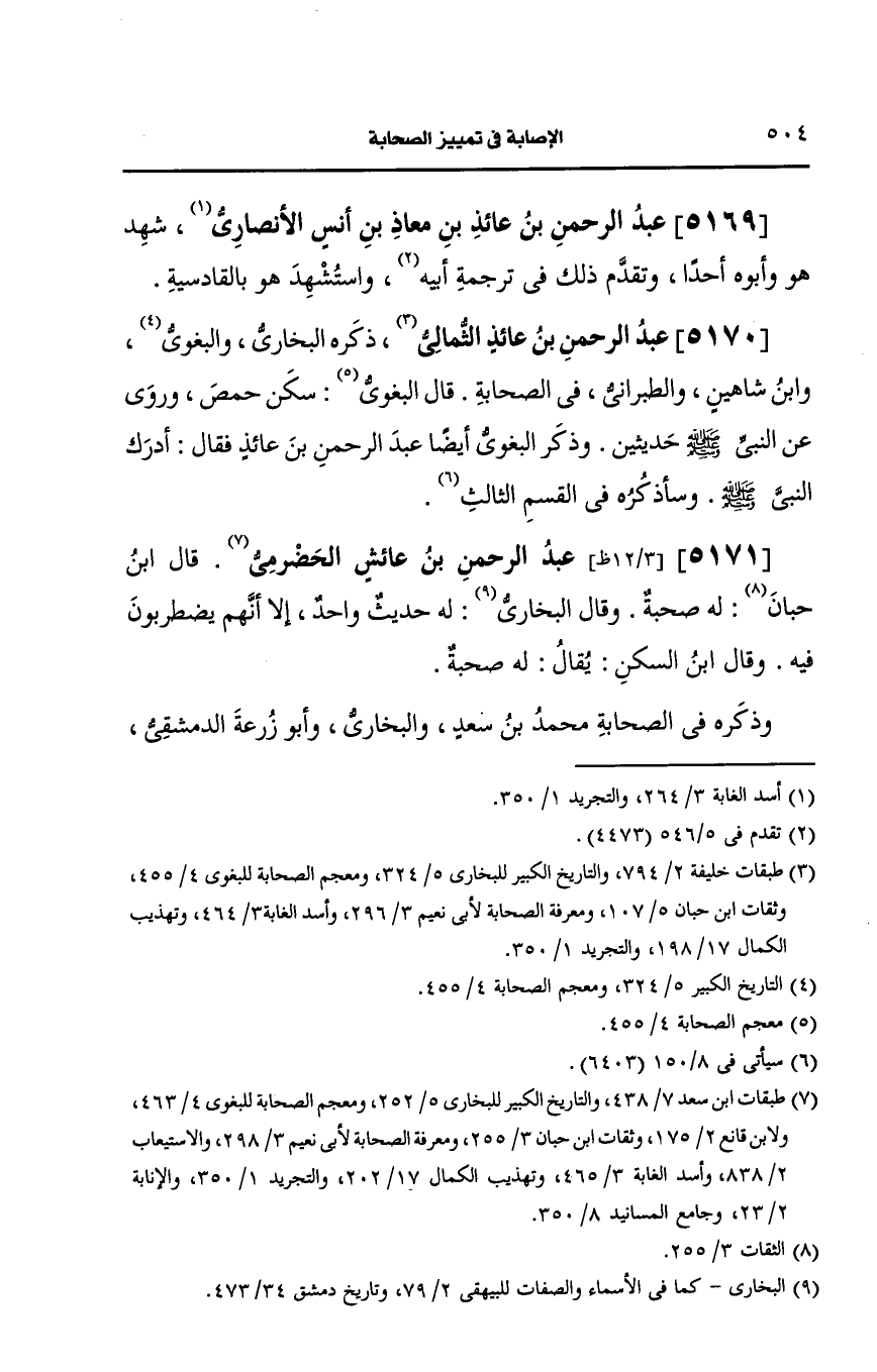 5169- عبد الرحمن بن عائذ بن معاذ بن أنس، الأَنصارِيّ.
