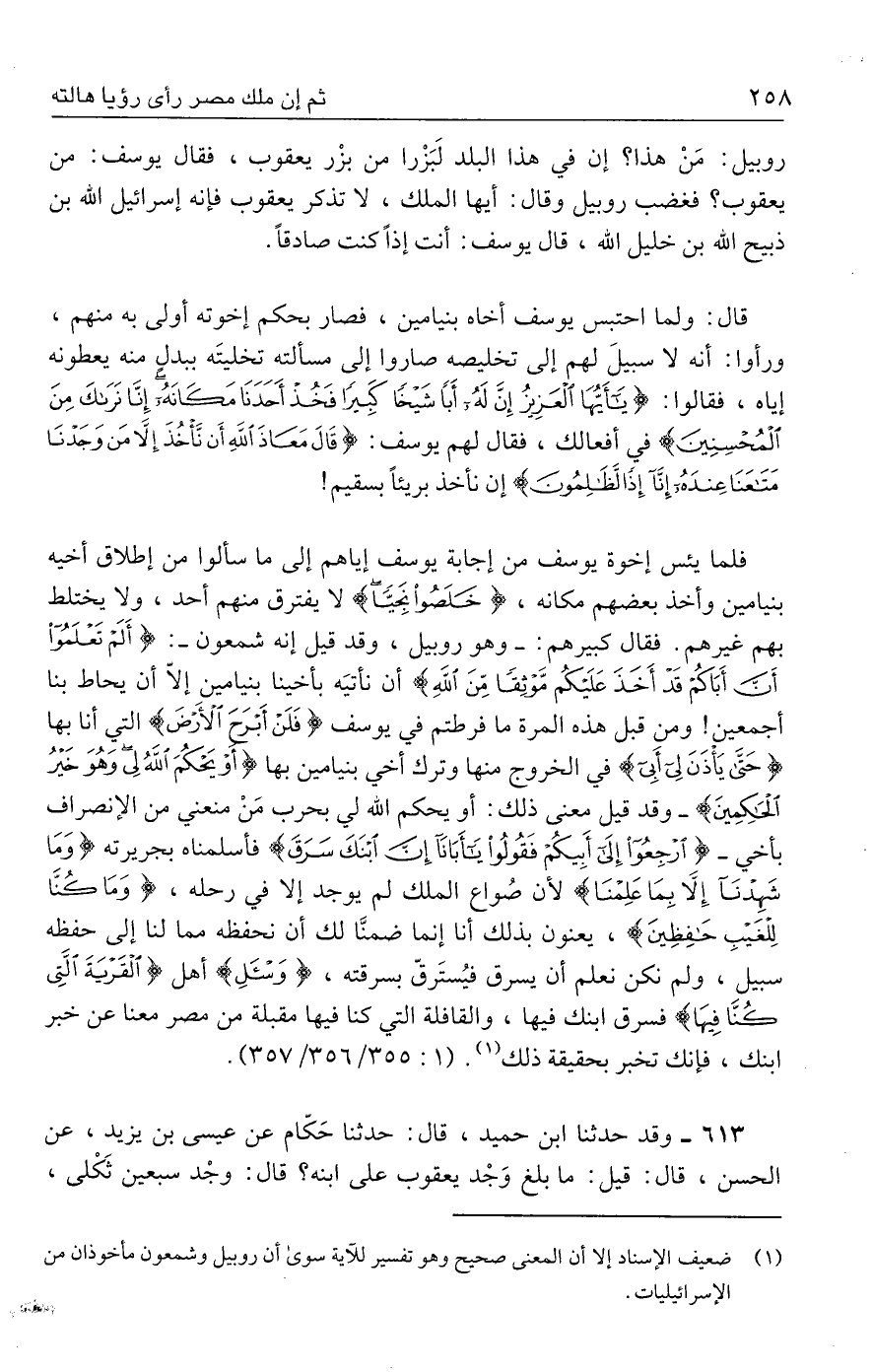 (١) ضعيف الإسناد إلا أن المعنى صحيح وهو تفسير للآية سوى أن روبيل وشمعون مأخوذان من الإسرائيليات.