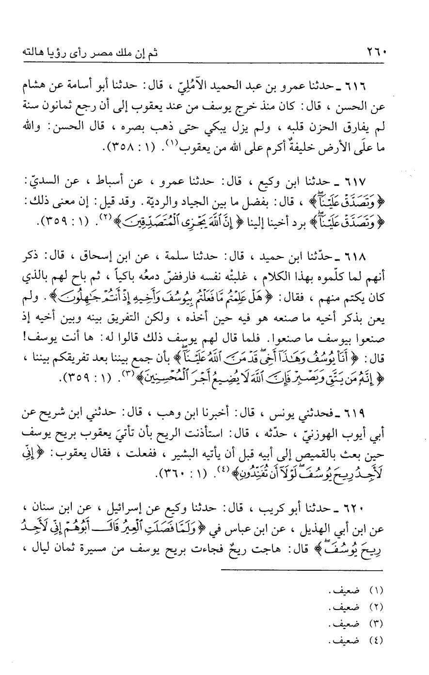٦١٩ - فحدثني يونس، قال: أخبرنا ابن وهب، قال: حدثني ابن شريح عن أبي أيوب الهوزنيّ، حدّثه، قال: استأذنت الريح بأن تأتيَ يعقوب بريح يوسف حين بعث بالقميص إلى أبيه قبل أن يأتيه البشير، ففعلت، فقال يعقوب: {إِنِّي لَأَجِدُ رِيحَ يُوسُفَ لَوْلَا أَنْ تُفَنِّدُونِ} (٤). (١: ٣٦٠).