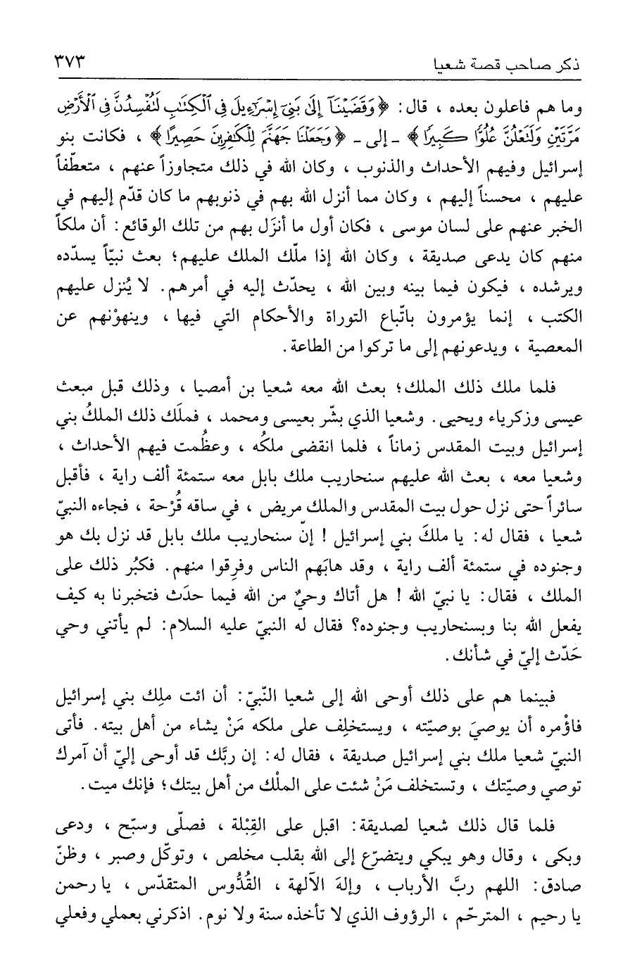 فبينما هم على ذلك أوحى الله إلى شعيا النَّبيّ: أن ائت ملِك بني إسرائيل فاؤْمره أن يوصيَ بوصيّته، ويستخلِف على ملكه مَنْ يشاء من أهل بيته. فأتى النبيّ شعيا ملك بني إسرائيل صديقة، فقال له: إن ربَّك قد أوحى إليّ أن آمرك توصي وصيّتك، وتستخلف مَن شئت على الملْك من أهل بيتك؛ فإنك ميت.