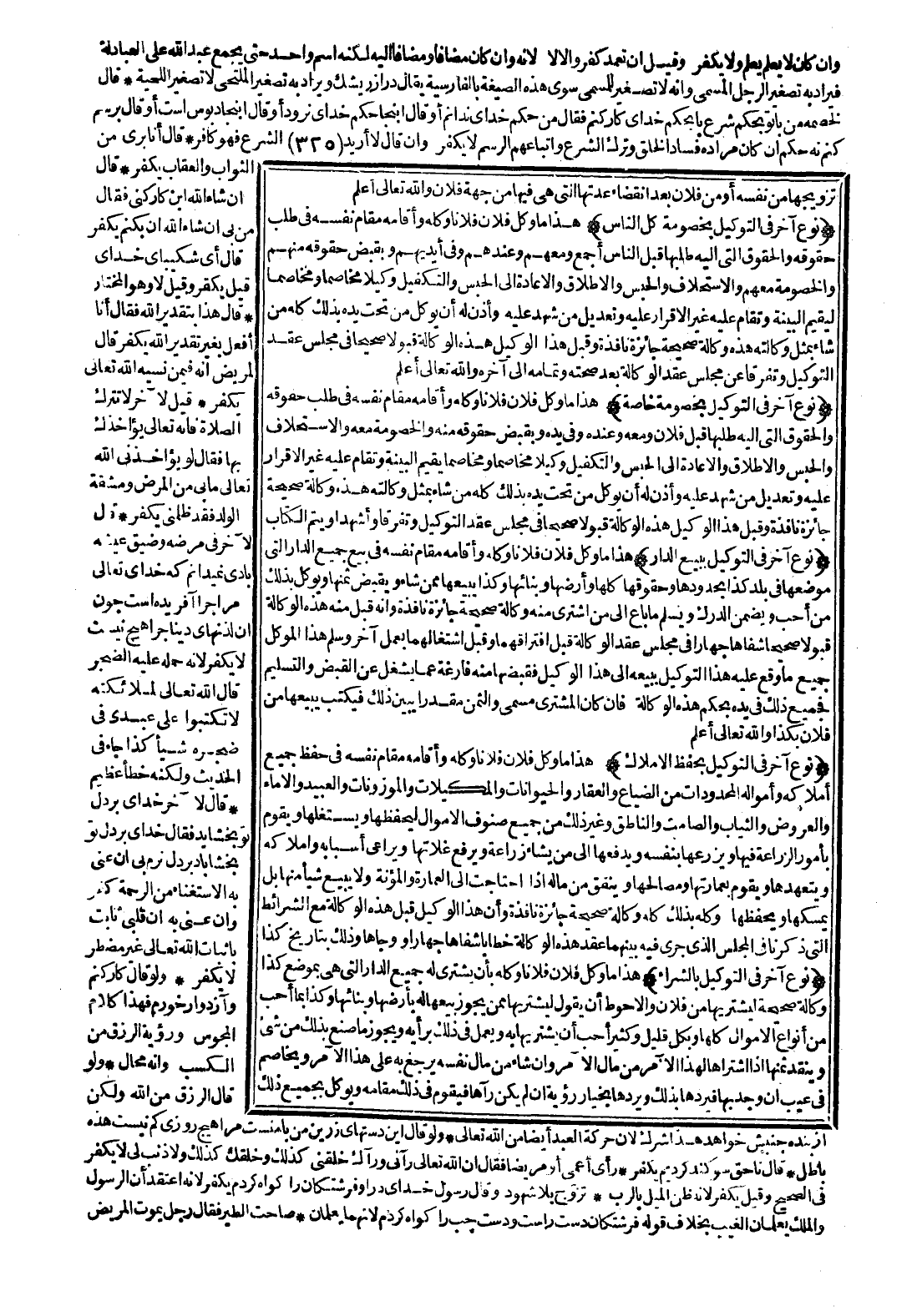(نَوْعٌ آخَرُ فِي التَّوْكِيلِ بِحِفْظِ الْأَمْلَاكِ) هَذَا مَا وَكَّلَ فُلَانٌ فُلَانًا وَكَّلَهُ وَأَقَامَهُ مَقَامَ نَفْسِهِ فِي حِفْظِ جَمِيعِ أَمْلَاكِهِ وَأَمْوَالِهِ الْمَحْدُودَاتِ مِنْ الضِّيَاعِ وَالْعَقَارِ وَالْحَيَوَانَاتِ وَالْمَكِيلَاتِ وَالْمَوْزُونَاتِ وَالْعَبِيدِ وَالْإِمَاءِ وَالْعُرُوضِ وَالثِّيَابِ وَالصَّامِتِ وَالنَّاطِقِ وَغَيْرِ ذَلِكَ مِنْ جَمِيعِ صُنُوفِ الْأَمْوَالِ لِيَحْفَظَهَا وَيَسْتَغِلَّهَا وَيَقُومَ بِأُمُورِ الزِّرَاعَةِ فِيهَا وَيَزْرَعَهَا بِنَفْسِهِ وَيَدْفَعَهَا إلَى مَنْ يَشَاءُ زِرَاعَةً وَيَرْفَعَ غَلَّاتِهَا وَيُرَاعِيَ أَسْبَابَهُ وَأَمْلَاكَهُ وَيَتَعَهَّدَهَا وَيَقُومَ بِعِمَارَتِهَا وَمَصَالِحِهَا وَيُنْفِقَ مِنْ مَالِهِ إذَا احْتَاجَتْ إلَى الْعِمَارَةِ وَالْمُؤْنَةِ وَلَا يَبِيعُ شَيْئًا مِنْهَا بَلْ يُمْسِكُهَا وَيَحْفَظُهَا وَكَّلَهُ بِذَلِكَ كُلِّهِ وَكَالَةً صَحِيحَةً جَائِزَةً نَافِذَةً وَأَنَّ هَذَا الْوَكِيلَ قَبِلَ هَذِهِ الْوَكَالَةَ مَعَ الشَّرَائِطِ الَّتِي ذَكَرْنَا فِي الْمَجْلِسِ الَّذِي جَرَى فِيهِ بَيْنَهُمَا عَقْدُ هَذِهِ الْوَكَالَةِ خِطَابًا شِفَاهًا جِهَارًا وَوِجَاهًا وَذَلِكَ بِتَارِيخِ كَذَا.