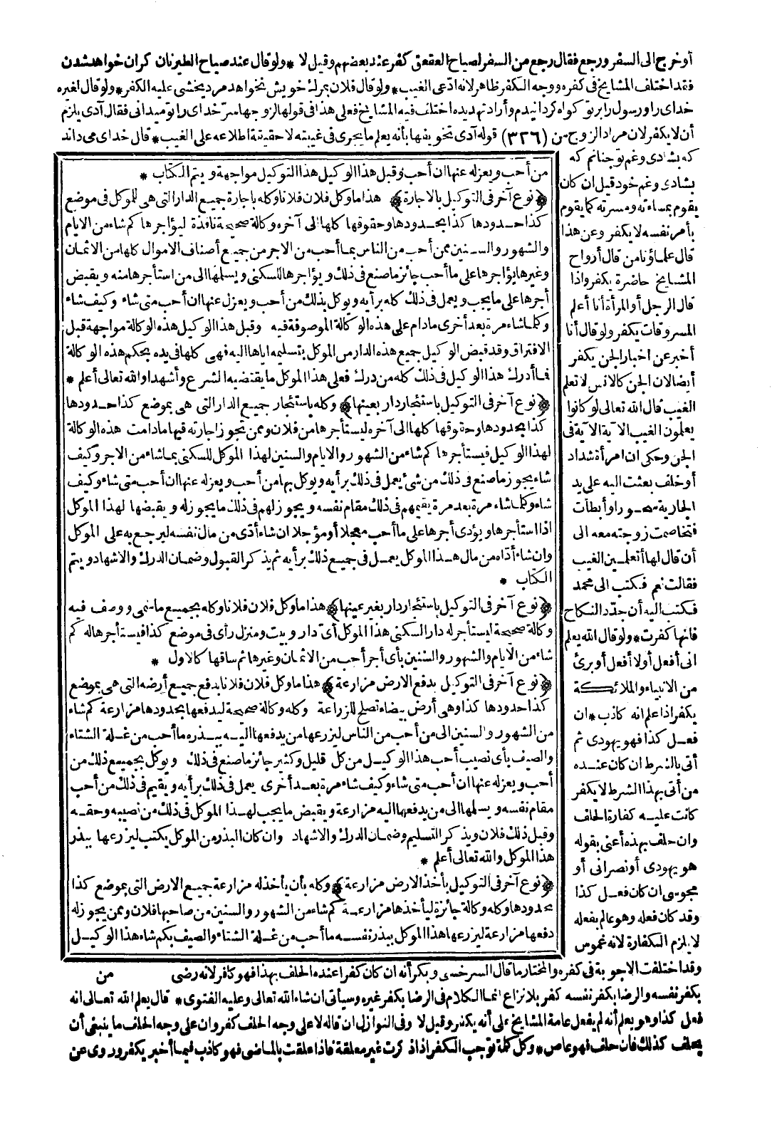 (نَوْعٌ آخَرُ فِي التَّوْكِيلِ بِأَخْذِ الْأَرْضِ مُزَارَعَةً) وَكَّلَهُ بِأَنْ يَأْخُذَ لَهُ مُزَارَعَةً جَمِيعَ الْأَرْضِ الَّتِي بِمَوْضِعِ كَذَا بِحُدُودِهَا وَكَّلَهُ وَكَالَةً جَائِزَةً لِيَأْخُذَهَا مُزَارَعَةً كَمْ شَاءَ مِنْ الشُّهُورِ وَالسِّنِينَ مِنْ صَاحِبِهَا فُلَانٍ وَمِمَّنْ يَجُوزُ لَهُ دَفْعُهَا مُزَارَعَةً لِيَزْرَعَهَا هَذَا الْمُوَكِّلُ بِبَذْرِ نَفْسِهِ مَا أَحَبَّ مِنْ غَلَّةِ الشِّتَاءِ وَالصَّيْفِ بِكُمْ شَاءَ هَذَا الْوَكِيلُ