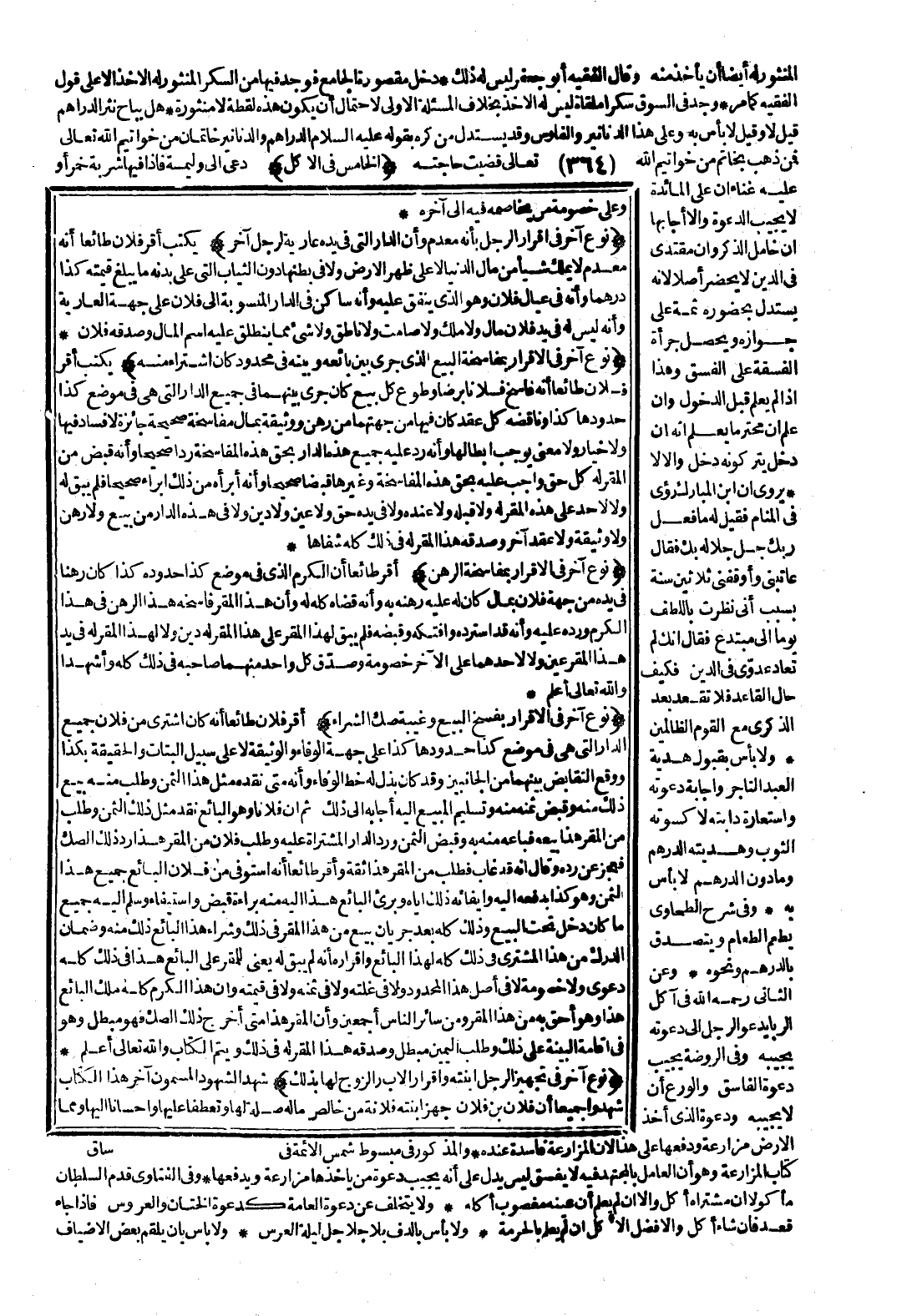 (نَوْعٌ آخَرُ فِي الْإِقْرَارِ بِمُفَاسَخَةِ الْبَيْعِ الَّذِي جَرَى بَيْنَ بَائِعِهِ وَبَيْنَهُ فِي مَحْدُودٍ كَانَ اشْتَرَاهُ مِنْهُ) يَكْتُبُ أَقَرَّ فُلَانٌ طَائِعًا أَنَّهُ فَاسَخَ فُلَانًا بِرِضًا وَطَوْعٍ كُلَّ بَيْعٍ كَانَ جَرَى بَيْنَهُمَا فِي جَمِيعِ الدَّارِ الَّتِي هِيَ فِي مَوْضِعِ كَذَا حُدُودُهَا كَذَا وَنَاقَضَهُ كُلَّ عَقْدٍ كَانَ فِيهَا مِنْ جِهَتِهِمَا مِنْ رَهْنٍ وَوَثِيقَةٍ بِمَالِ مُفَاسَخَةٍ صَحِيحَةٍ جَائِزَةٍ لَا فَسَادَ فِيهَا وَلَا خِيَارَ وَلَا مَعْنَى يُوجِبُ إبْطَالَهَا وَأَنَّهُ رَدَّ عَلَيْهِ جَمِيعَ هَذِهِ الدَّارِ بِحَقِّ هَذِهِ الْمُفَاسَخَةِ رَدًّا صَحِيحًا وَأَنَّهُ قَبَضَ مِنْ الْمُقَرِّ لَهُ كُلَّ حَقٍّ وَاجِبٍ عَلَيْهِ بِحَقِّ هَذِهِ الْمُفَاسَخَةِ وَغَيْرِهَا قَبْضًا صَحِيحًا وَأَنَّهُ أَبْرَأَهُ مِنْ ذَلِكَ إبْرَاءً صَحِيحًا فَلَمْ يَبْقَ لَهُ وَلَا لِأَحَدٍ عَلَى هَذَا الْمُقَرِّ لَهُ وَلَا قِبَلَهُ وَلَا عِنْدَهُ وَلَا فِي يَدِهِ حَقٌّ وَلَا عَيْنٌ وَلَا دَيْنٌ وَلَا فِي هَذِهِ الدَّارِ مِنْ بَيْعٍ وَلَا رَهْنٍ وَلَا وَثِيقَةٍ وَلَا عَقْدٍ آخَرَ وَصَدَّقَهُ هَذَا الْمُقَرُّ لَهُ فِي ذَلِكَ كُلِّهِ شِفَاهًا.