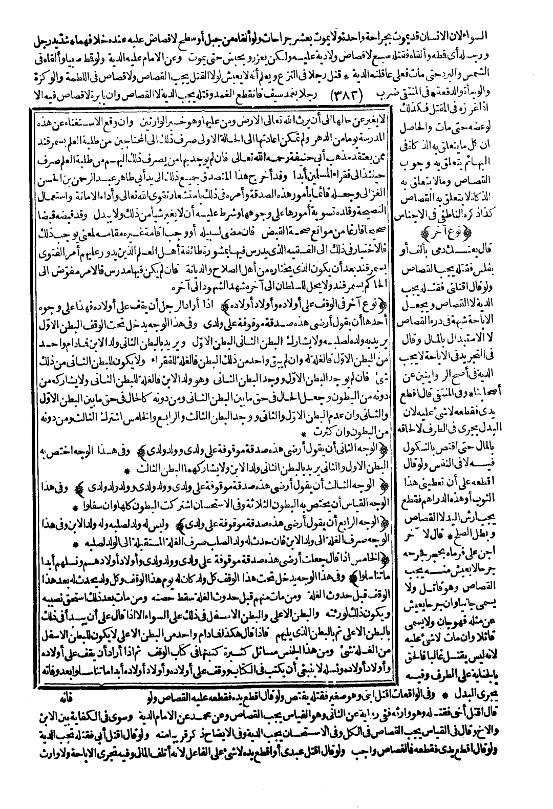 (الْوَجْهُ الثَّالِثُ أَنْ يَقُولَ: أَرْضِي هَذِهِ صَدَقَةٌ مَوْقُوفَةٌ عَلَى وَلَدِي وَوَلَدِ وَلَدِي وَوَلَدِ وَلَدِ وَلَدِي) وَفِي هَذَا الْوَجْهِ قِيَاسٌ عَلَى أَنْ يَخْتَصَّ بِهِ الْبُطُونُ الثَّلَاثَةُ وَفِي الِاسْتِحْسَانِ اشْتَرَكَتْ الْبُطُونُ كُلُّهَا، وَإِنْ سَفَلُوا.