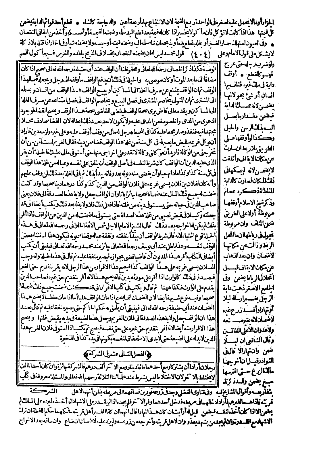الْوَصِيَّةِ هَكَذَا ذَكَرَ الْخَصَّافُ - رَحِمَهُ اللَّهُ تَعَالَى - وَمَحْفُوظُنَا أَنَّ الْوَقْفَ عِنْدَ أَبِي حَنِيفَةَ - رَحِمَهُ اللَّهُ تَعَالَى - صَحِيحٌ إذَا كَانَ مُضَافًا إلَى مَا بَعْدَ الْمَوْتِ أَوْ كَانَ مُوصًى بِهِ وَالْحِيلَةُ فِي ذَلِكَ أَنْ يَدْفَعَ الْوَاقِفُ مَا وَقَفَهُ إلَى رَجُلٍ وَيَجْعَلَهُ قَيِّمًا لِهَذَا الْوَقْفِ، ثُمَّ إنَّ الْوَاقِفَ يَمْتَنِعُ عَنْ صَرْفِ الْغَلَّةِ إلَى الْمَسَاكِينِ أَوْ يَبِيعُ الْوَاقِفُ هَذَا الْوَقْفَ مِنْ إنْسَانٍ وَيُسَلِّمُهُ إلَى الْمُشْتَرِي، ثُمَّ إنَّ الْمُتَوَلِّيَ يُخَاصِمُ الْمُشْتَرِيَ فِي فَصْلِ الْبَيْعِ وَيُخَاصِمُ الْوَاقِفَ فِي فَصْلِ امْتِنَاعِهِ عَنْ صَرْفِ الْغَلَّةِ إلَى الْمَسَاكِينِ وَيُقَدِّمُهُ إلَى قَاضٍ يَرَى صِحَّةَ الْوَقْفِ فَيَقْضِي الْقَاضِي بِصِحَّةِ هَذَا الْوَقْفِ وَيَصِحُّ الْقَضَاءُ لِوُجُودِ الدَّعْوَى مِنْ الْمُدَّعِي وَالْخُصُومَةِ مِنْ الْمُدَّعَى عَلَيْهِ وَلَا يَكُونُ لِأَحَدٍ بَعْدَ ذَلِكَ إبْطَالُهُ؛ لِأَنَّ الْقَضَاءَ صَادَفَ مَحِلًّا مُجْتَهَدًا فِيهِ فَنَفَذَ وَصَارَ مُجْمَعًا عَلَيْهِ، كَذَا فِي الْمُحِيطِ.