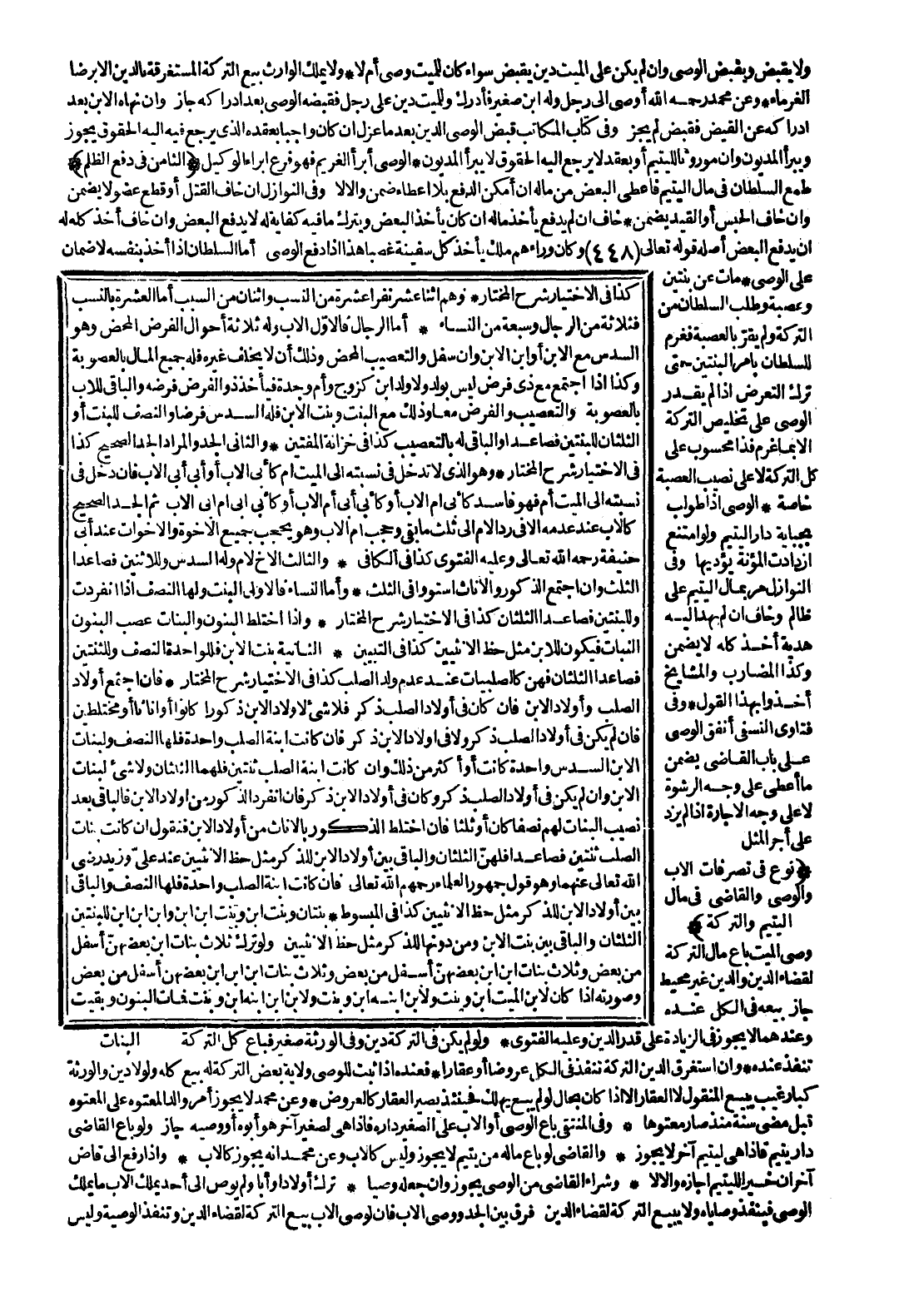 الثَّانِيَةُ - بِنْتُ الِابْنِ فَلِلْوَاحِدَةِ النِّصْفُ وَلِلثِّنْتَيْنِ فَصَاعِدًا الثُّلُثَانِ فَهُنَّ كَالصُّلْبِيَّاتِ عِنْدَ عَدَمِ وَلَدِ الصُّلْبِ، كَذَا فِي الِاخْتِيَارِ شَرْحِ الْمُخْتَارِ فَإِنْ اجْتَمَعَ أَوْلَادُ الصُّلْبِ وَأَوْلَادُ الِابْنِ فَإِنْ كَانَ فِي أَوْلَادِ الصُّلْبِ ذَكَرٌ فَلَا شَيْءَ لِأَوْلَادِ الِابْنِ ذُكُورًا كَانُوا أَوْ إنَاثًا أَوْ مُخْتَلِطِينَ، فَإِنْ لَمْ يَكُنْ فِي أَوْلَادِ الصُّلْبِ ذَكَرٌ وَلَا فِي أَوْلَادِ الِابْنِ ذَكَرٌ، فَإِنْ كَانَتْ ابْنَةُ الصُّلْبِ وَاحِدَةً فَلَهَا النِّصْفُ وَلِبَنَاتِ الِابْنِ السُّدُسُ وَاحِدَةً كَانَتْ أَوْ أَكْثَرَ مِنْ ذَلِكَ، وَإِنْ كَانَتْ ابْنَةُ الصُّلْبِ ثِنْتَيْنِ فَلَهُمَا الثُّلُثَانِ وَلَا شَيْءَ لِبَنَاتِ الِابْنِ وَإِنْ لَمْ يَكُنْ فِي أَوْلَادِ الصُّلْبِ ذَكَرٌ وَكَانَ فِي أَوْلَادِ الِابْنِ ذَكَرٌ فَإِنْ انْفَرَدَ الذُّكُورُ مِنْ أَوْلَادِ الِابْنِ فَالْبَاقِي بَعْدَ نَصِيبِ الْبَنَاتِ لَهُمْ نِصْفًا كَانَ أَوْ ثُلُثًا فَإِنْ اخْتَلَطَ الذُّكُورُ بِالْإِنَاثِ مِنْ أَوْلَادِ الِابْنِ فَنَقُولُ: إنْ كَانَتْ بَنَاتُ الصُّلْبِ ثِنْتَيْنِ فَصَاعِدًا فَلَهُنَّ الثُّلُثَانِ وَالْبَاقِي بَيْنَ أَوْلَادِ الِابْنِ لِلذَّكَرِ مِثْلُ حَظِّ الْأُنْثَيَيْنِ عِنْدَ عَلِيٍّ وَزَيْدٍ - رَضِيَ اللَّهُ تَعَالَى عَنْهُمَا - وَهُوَ قَوْلُ جُمْهُورِ الْعُلَمَاءِ - رَحِمَهُمْ اللَّهُ تَعَالَى - فَإِنْ كَانَتْ ابْنَةُ الصُّلْبِ وَاحِدَةً فَلَهَا النِّصْفُ وَالْبَاقِي بَيْنَ أَوْلَادِ الِابْنِ لِلذَّكَرِ مِثْلُ حَظِّ الْأُنْثَيَيْنِ، كَذَا فِي الْمَبْسُوطِ.