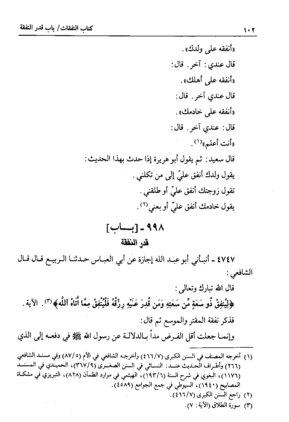 4747 - أنبأني أبو عبد الله إجازة عن أبي العباس حدثنا الربيع قال قال الشافعي : قال الله تبارك وتعالى {لينفق ذو سعة من سعته ومن قدر عليه رزقه فلينفق مما آتاه الله} . الآية.