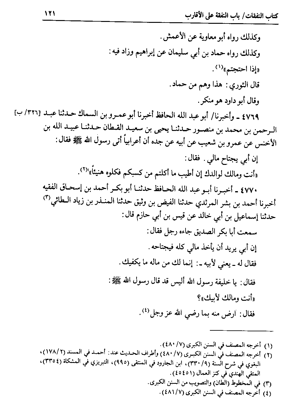 4769 - وأخبرنا أبو عبد الله الحافظ أخبرنا أو عمرو بن السماك حدثنا عبد الرحمن بن محمد بن منصور حدثنا يحيى بن سعيد القطان حدثنا عبيد الله بن الأخنس عن عمرو بن شعيب عن أبيه عن جده أن أعرابياً أتى رسول الله صلى الله عليه وسلم فقال : إن أبي يحتاج مالي . فقال : أنت ومالك لوالدك إن أطيب ما أكلتم من كسبكم فكلوه هنيئاً.