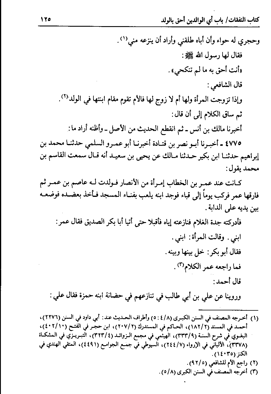 قال أحمد : وروينا عن علي بن أبي طالب في تنازعهم في حضانة ابنه حمزة فقال علي