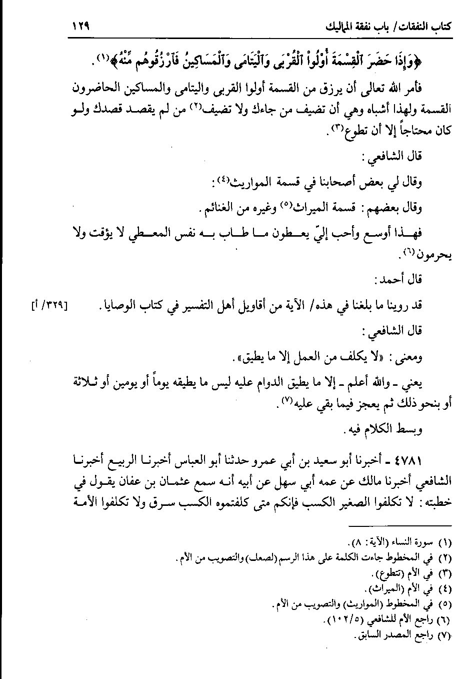 قال الشافعي : وقال لي بعض أصحابنا في قسمة المواريث.