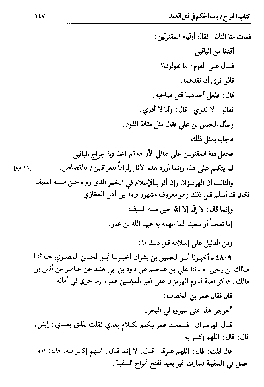 ومن الدليل على إسلامه قبل ذلك ما 4809 - أخبرنا أبو الحسين بن بشران أخبرنا أبو الحسن المصري حدثنا مالك بن يحيى حدثنا علي بن عاصم عن داود بن أبي هند عن عامر عن أنس بن مالك . فذكر قصة قدوم الهرمزان على أمير المؤمنين عمر ، وما جرى في أمانه.