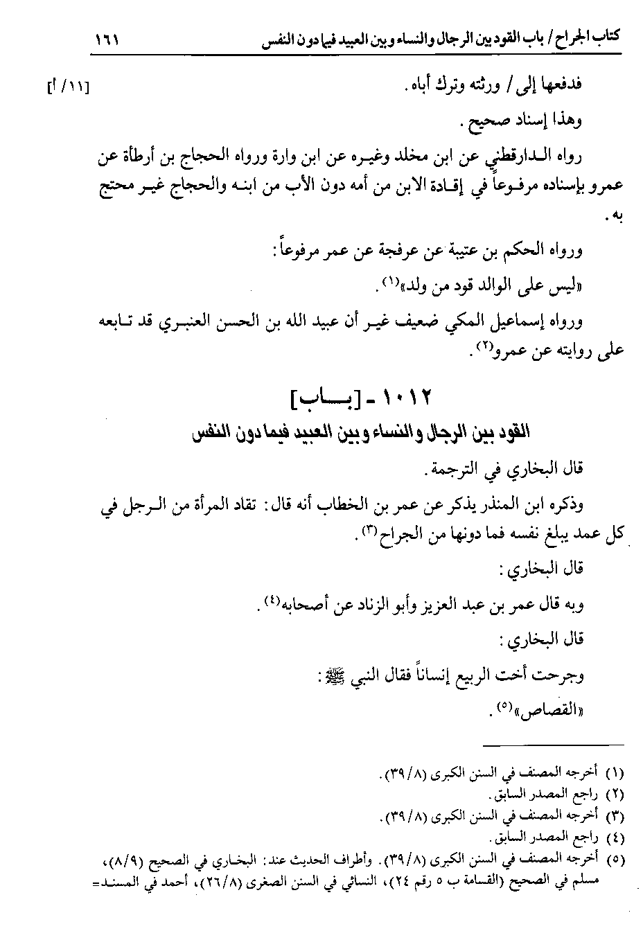 1012 - باب القود بين الرجال والنساء وبين العبيد فيما دون النفس