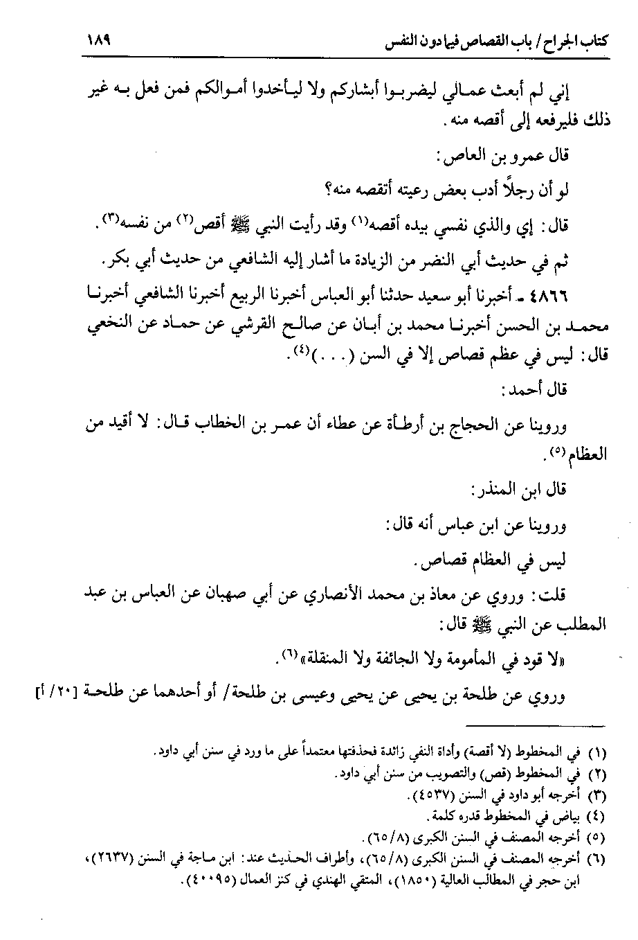 4866 - أخبرنا أبو سعيد حدثنا أبو العباس أخبرنا الربيع أخبرنا الشافعي أخبرنا محمد بن الحسن أخبرنا محمد بن أبان عن صالح القرشي عن حماد عن النخعي قال Y ليس في عظم قصاص إلا في السن ( . . . ).
