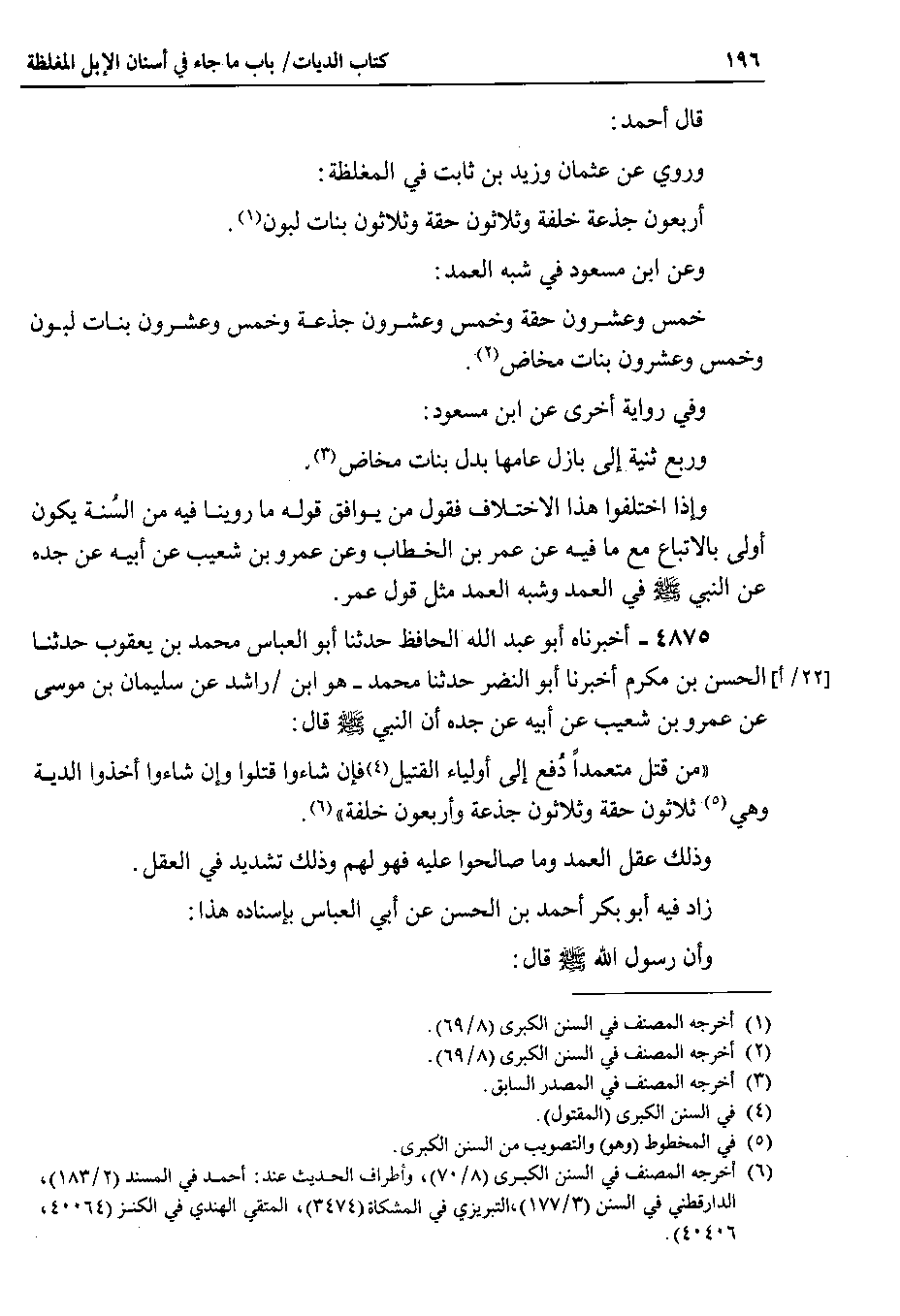 وإذا اختلفوا هذا الاختلاف فقول من يوافق قوله ما روينا فيه من السُنة يكون أولى بالاتباع مع ما فيه عن عمر بن الخطاب وعن عمرو بن شعيب عن أبيه عن جده عن النبي صلى الله عليه وسلم في العمد وشبه العمد مثل قول عمر.
