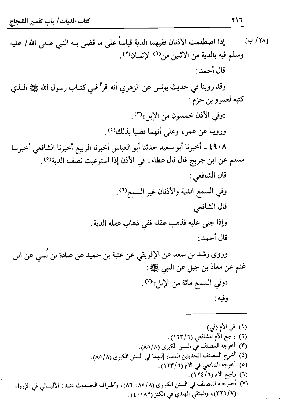 قال أحمد : وروى رشد بن سعد عن الإفريقي عن عتبة بن حميد عن عبادة بن نُسي عن ابن غنم عن معاذ بن جبل عن النبي صلى الله عليه وسلم : وفي السمع مِئَة من الإبل.