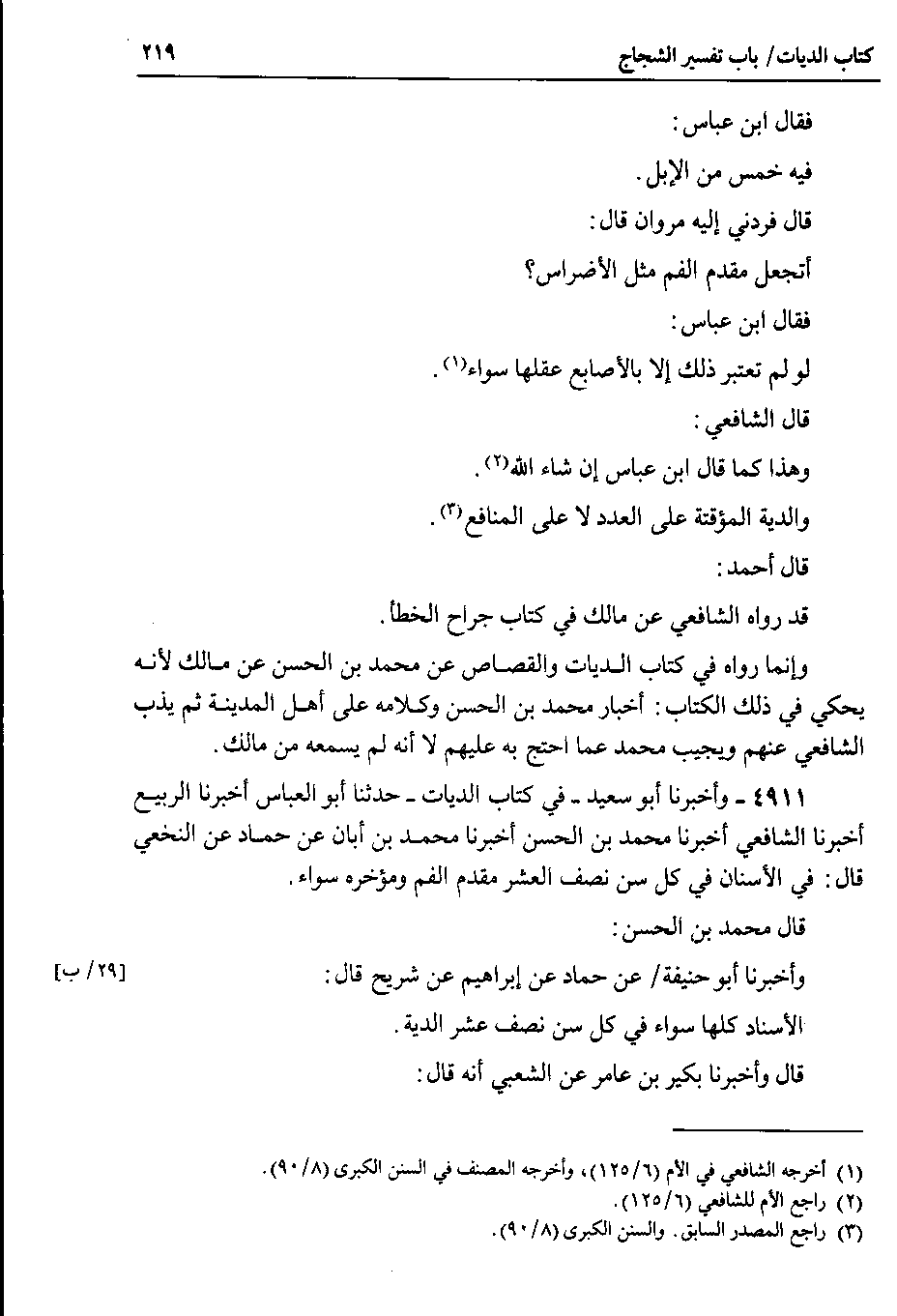 4911 - وأخبرنا أبو سعيد - في كتاب الديات - حدثنا أبو العباس أخبرنا الربيع أخبرنا الشافعي أخبرنا محمد بن الحسن أخبرنا محمد بن أبان عن حماد عن النخغي قال : في الأسنان في كل سن نصف العشر مقدم الفم ومؤخره سواء.