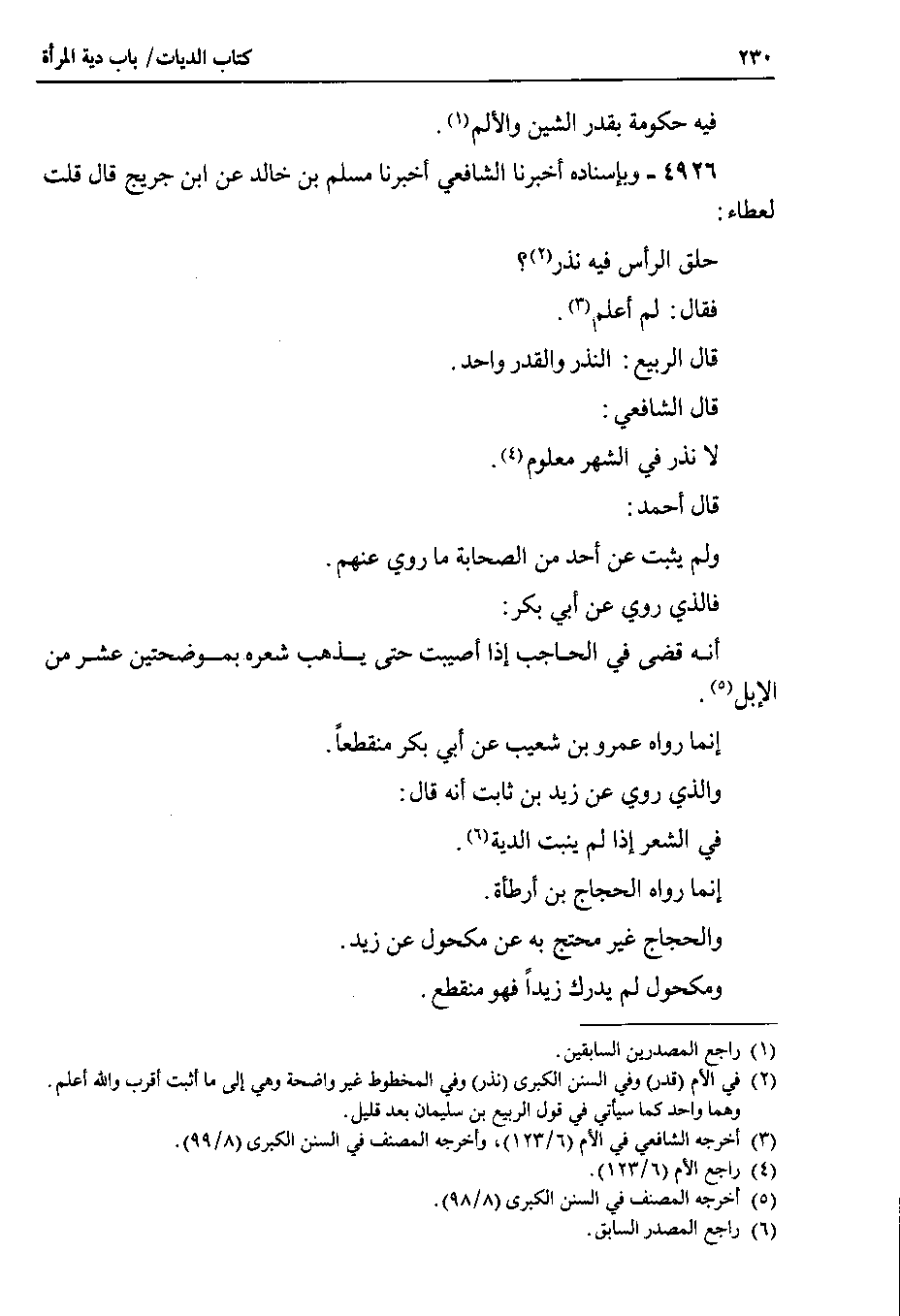 4926 - وبإسناده أخبرنا الشافعي أخبرنا مسلم بن خالد عن ابن جريج قال قلت لعطاء : حلق الرأس فيه نذر ؟ فقال : لم أعلم.
